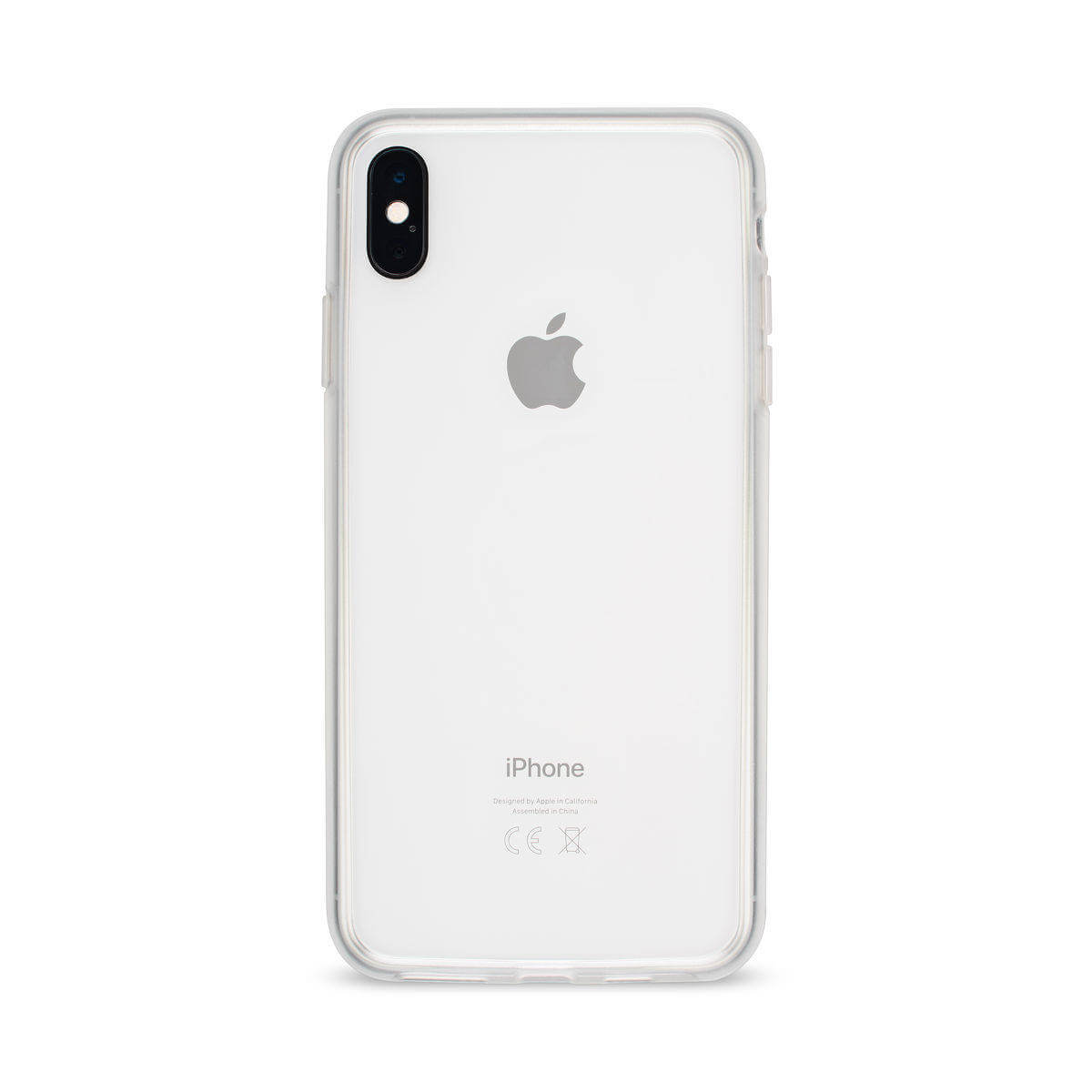 Artwizz Bumper + Second Back - силиконов (TPU) бъмпер и стъклено защитно покритие за гърба за iPhone XS Max (бял-прозрачен)