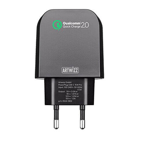 Artwizz PowerPlug USB-C Qualcom Quickcharge 15W Pro - захранване за ел. мрежа с USB-C изход и технология бързо зареждане (черен)