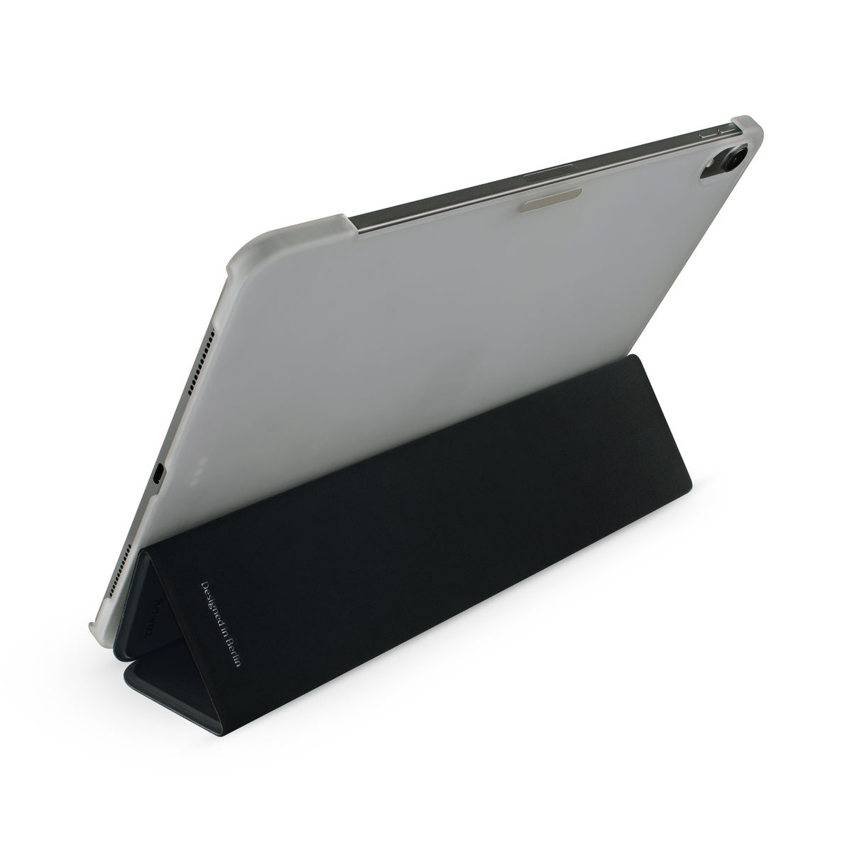 - Стилен полиуретанов калъф с възможност за поставка за вашия iPad