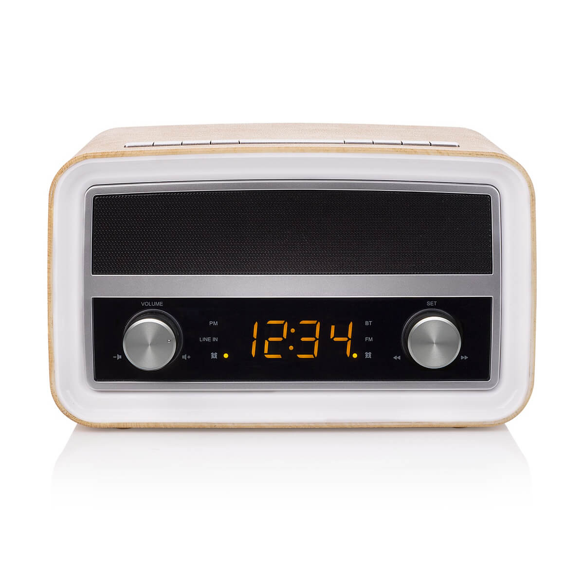 - Радиото разполага с двойна аларма, която ви позволява да зададете аларма на партньора си, вашата, или и на двама ви. Ретро радиото е не само удобно, но и изглежда стилно на нощното ви шкафче. Освен това може да се използва резервната батерия, която да гарантира, че алармата ви не се прекъсва в случай на прекъсване на захранването