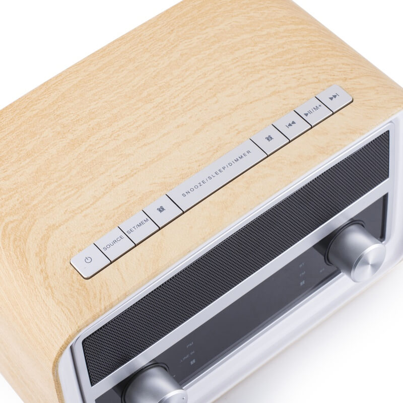 - Винаги пускайте любимите си песни с този ретро радио спийкър. Може също да възпроизвежда музика чрез Bluetooth, USB и AUX. Можете да използвате радиото като будилник с двойната аларма. Ретро дизайнът прави радиото наистина привлекателно