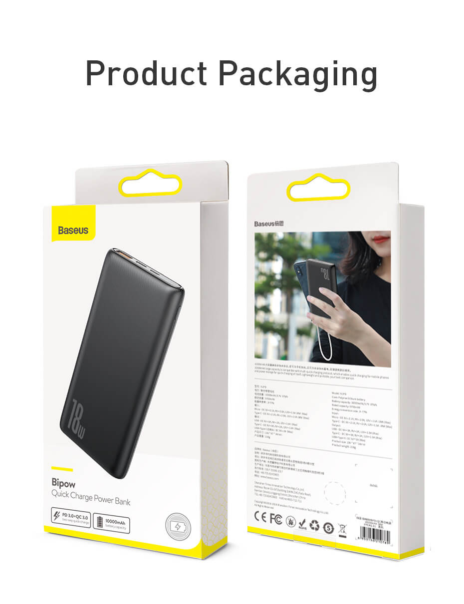 - 1 x Baseus 18W Power Bank 10000mAh - 1 x Baseus USB-C кабел - 1 х ръководство