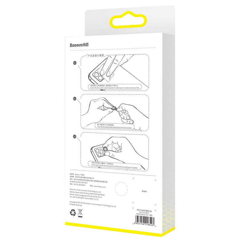 - 2 х Baseus Alloy Protection Ring Lens - 1 x микрофибърна кърпичка - 1 х мокра кърпичка - 1 х антистатична лепенка за премахване на прашинки