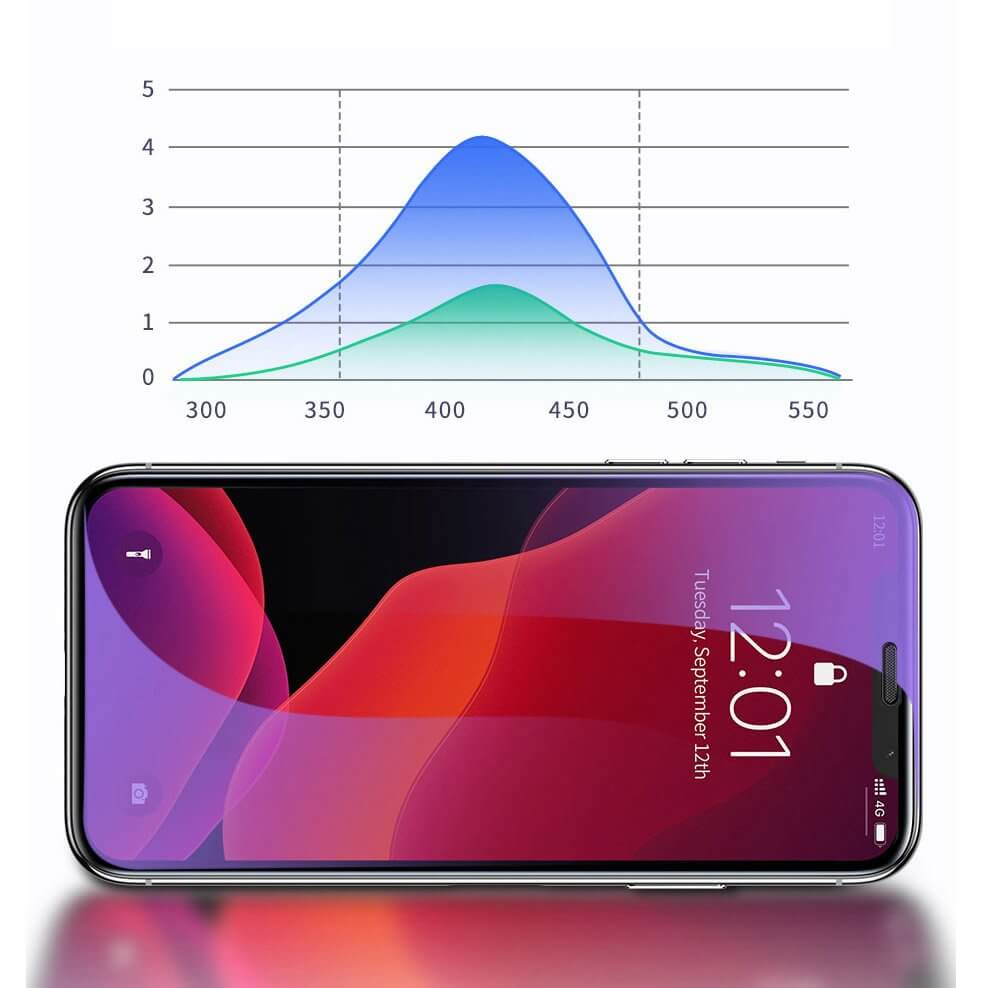 Baseus Anti-bluelight Curved Full Screen Tempered Glass (0.23 mm) - калено стъклено защитно покритие за целия дисплей на iPhone 11 Pro Max, iPhone XS Max (прозрачен-черен) (2 броя)