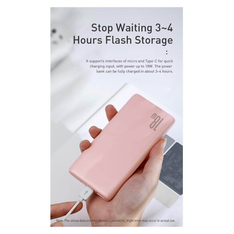 Baseus Bipow 18W Power Bank PD+QC 10000mAh - външна батерия 18W с USB и USB-C изходи и с технология за бързо зареждане (розов)