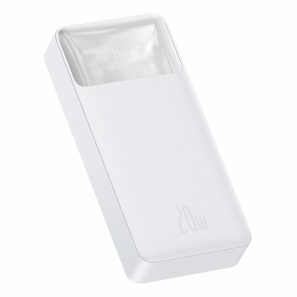Baseus Bipow Digital Display Power Bank 20W 20000 mAh (PPDML-M02) - външна батерия с два USB-A и един USB-C изходи и технология за бързо зареждане (бял)