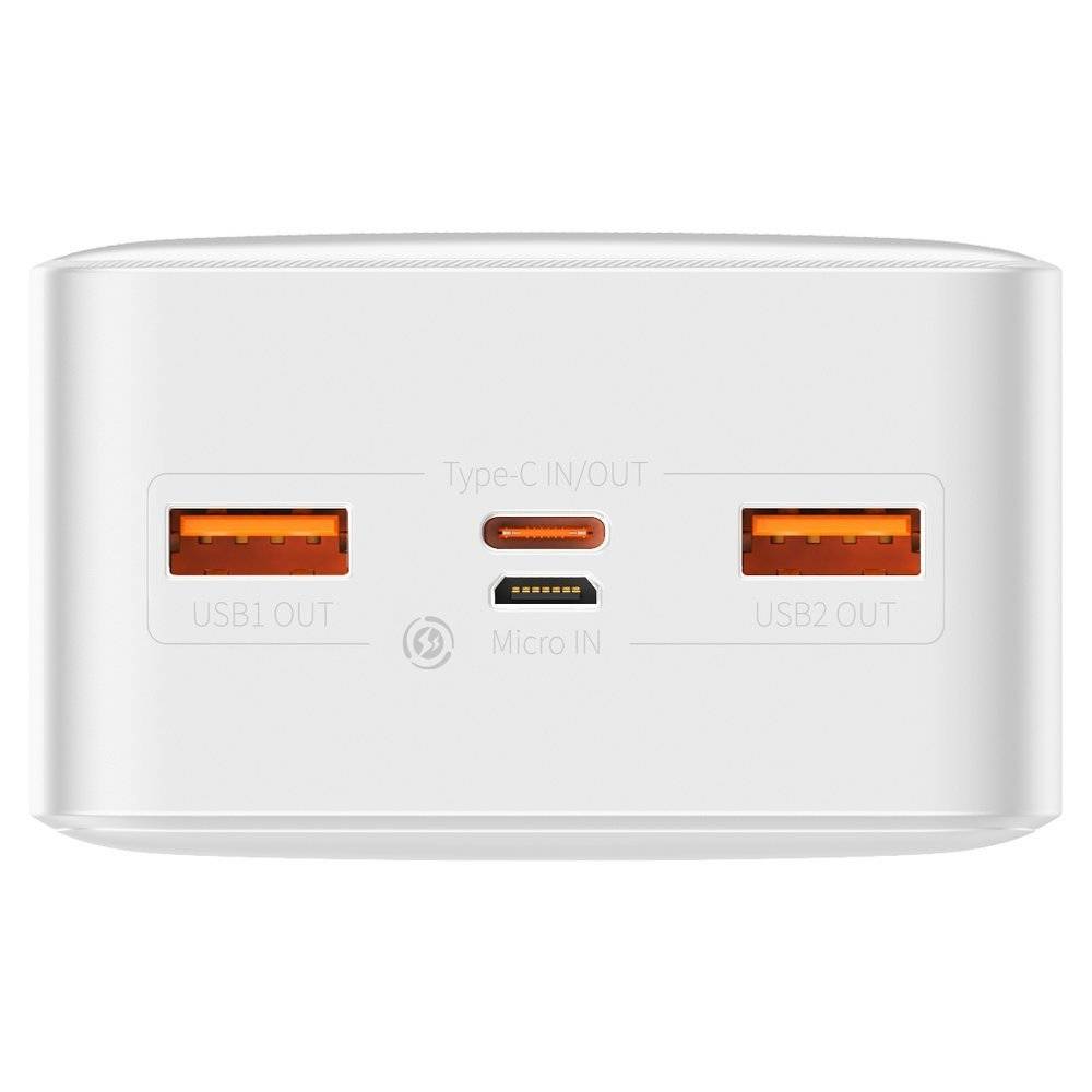 Baseus Bipow Digital Display Power Bank 20W 30000 mAh (PPDML-N01) - външна батерия с два USB-A и един USB-C изходи и технология за бързо зареждане (бял)