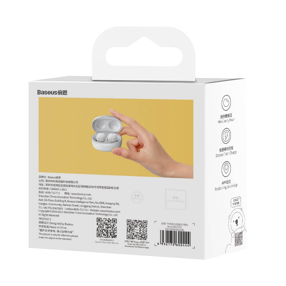Baseus Bowie E2 TWS In-Ear Bluetooth Earbuds - водонепромукаеми безжични слушалки със зареждащ кейс (бял)