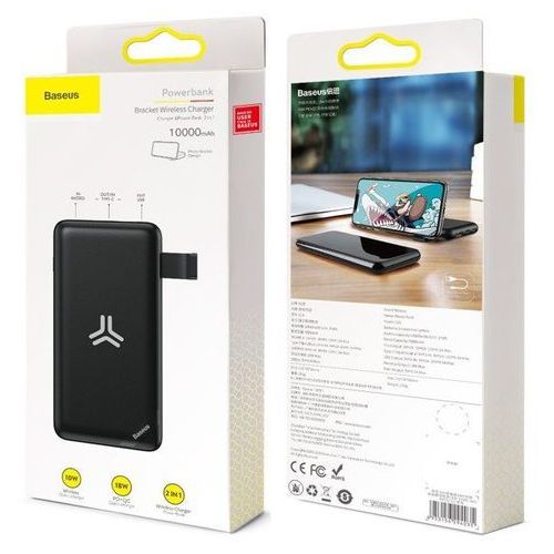Baseus Bracket Power Bank 10W Wireless Charger 10000mAh - външна батерия с USB и USB-C изходи и с технология за безжично зареждане (черен)