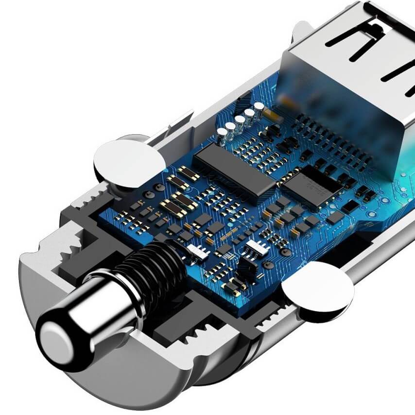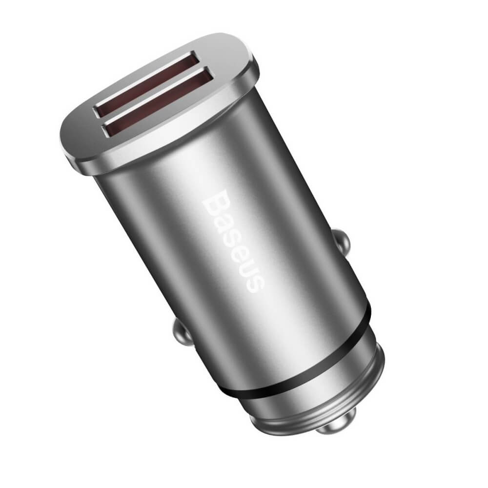 Baseus Dual QC 3.0 Car Charger - зарядно за кола с два USB изхода и технология за бързо зареждане (сребрист)