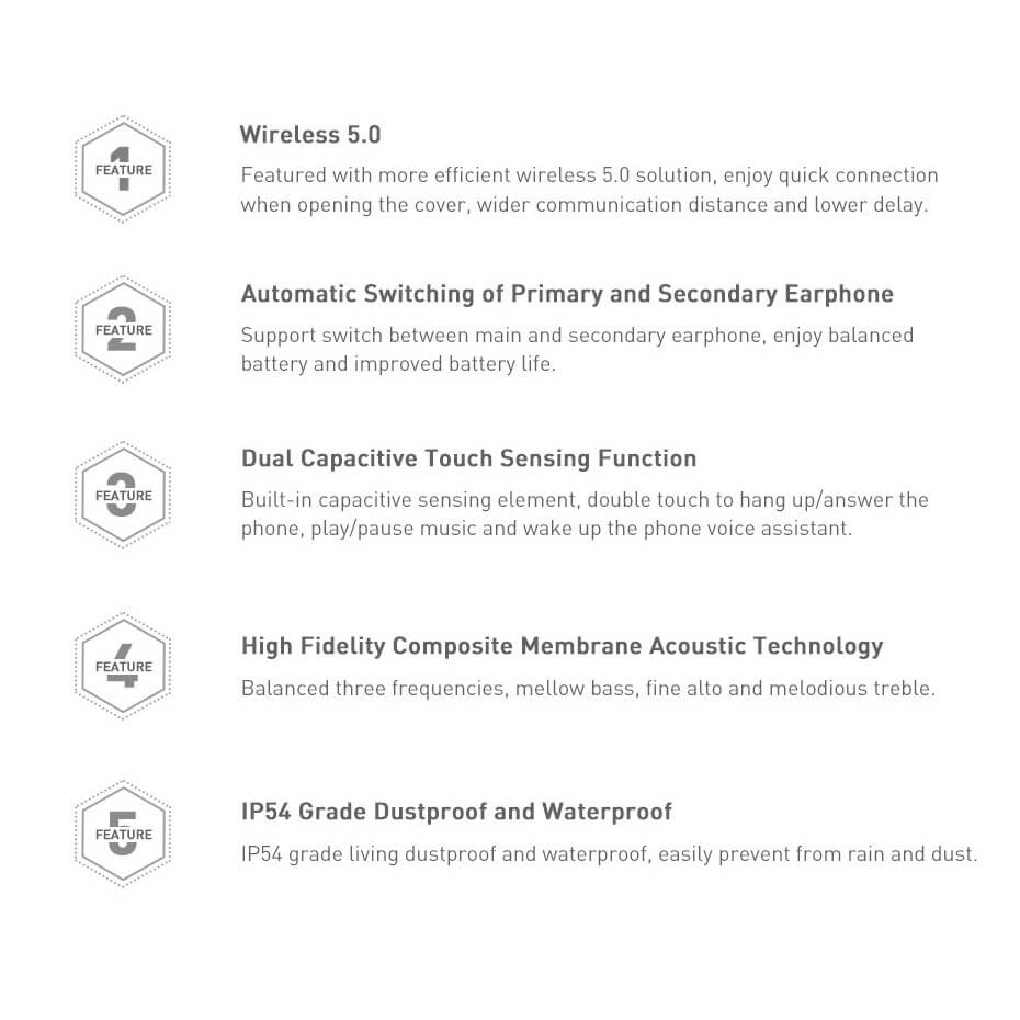 - Тъч управление на слушалките - двойно потупване отговаря или затваря обаждане, паузира и пуска музиката или пък активира гласовия асистент