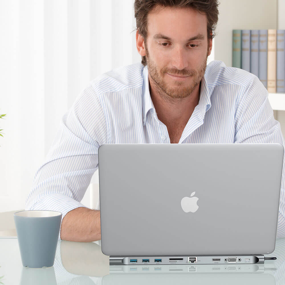 - Мултифункционален хъб с множество изходи за MacBook и компютри с USB-C стандарт