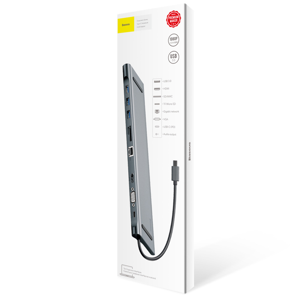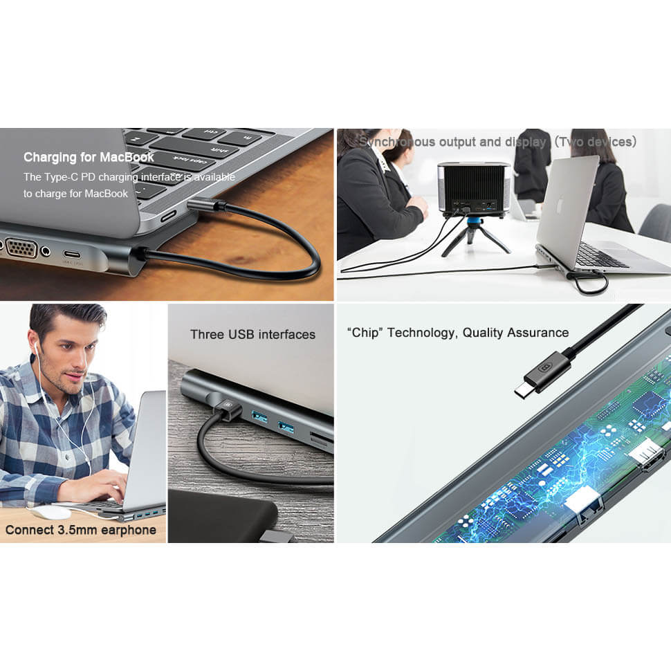Baseus Enjoyment Series USB-C Notebook Hub - мултифункционален хъб за свързване на допълнителна периферия за Macbook и USB-C устройства (сив)