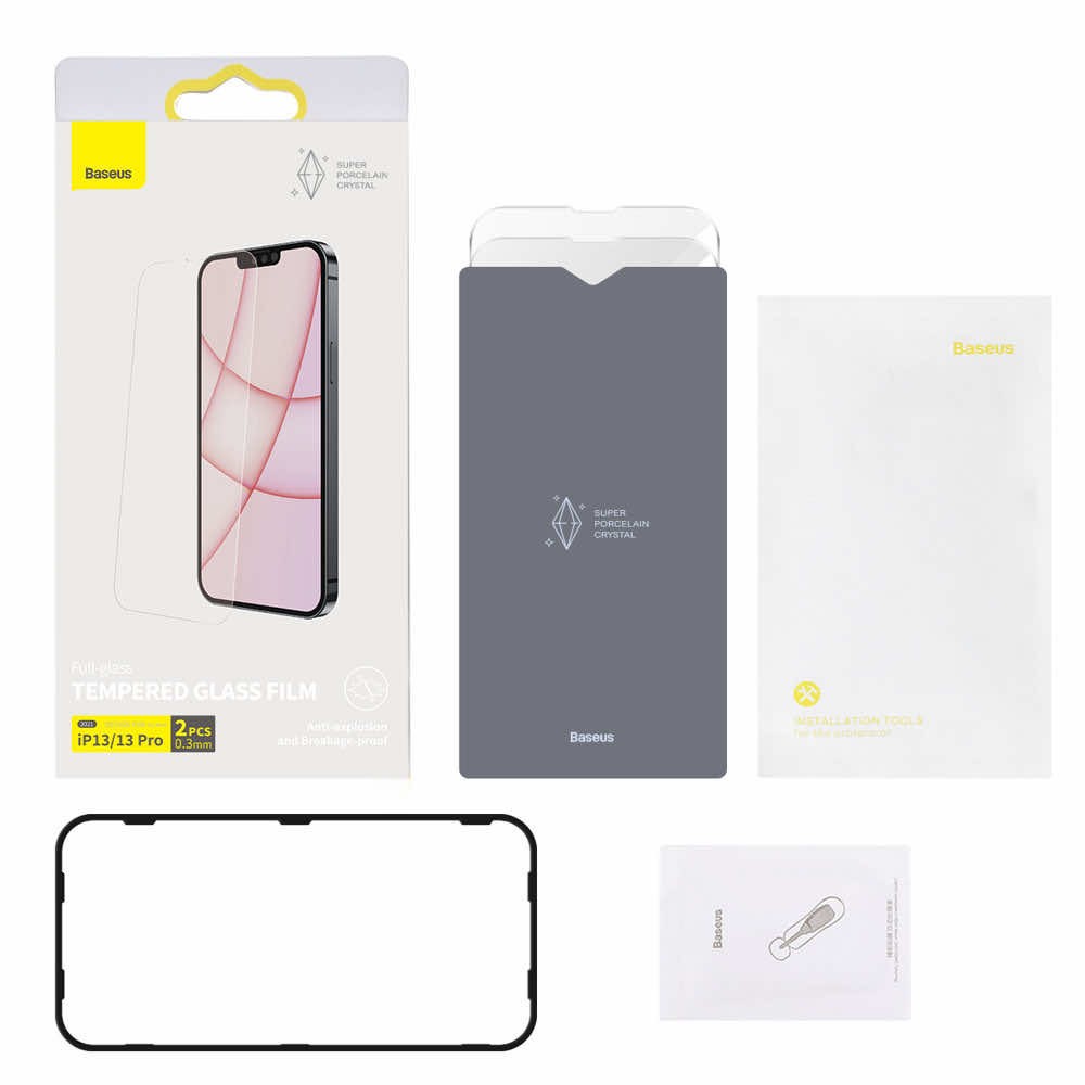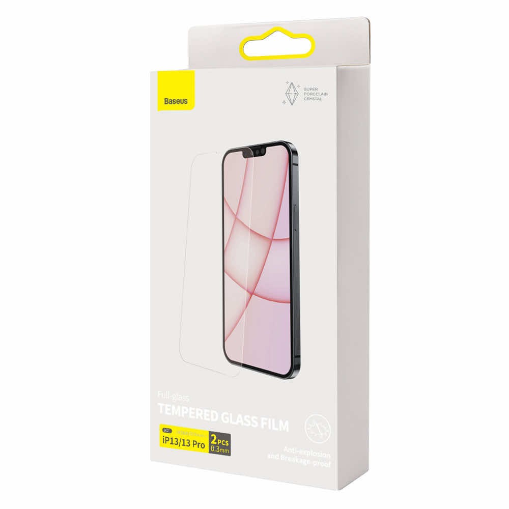 Baseus Full Screen Porcelain Tempered Glass (SGBL030102) - стъклено защитно покритие за целия дисплей на iPhone 13, iPhone 13 Pro (прозрачен) (2 броя)