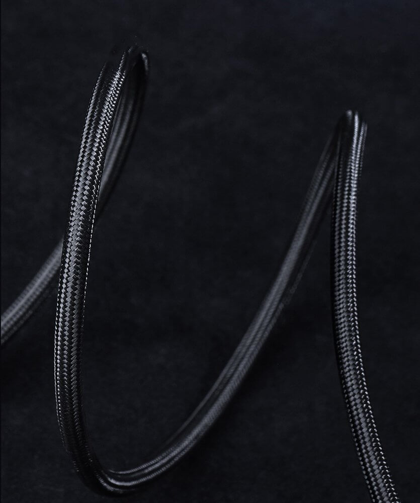 - Кабелът е обвит в здрава въжена оплетка, която го предпазва от износване и скъсване