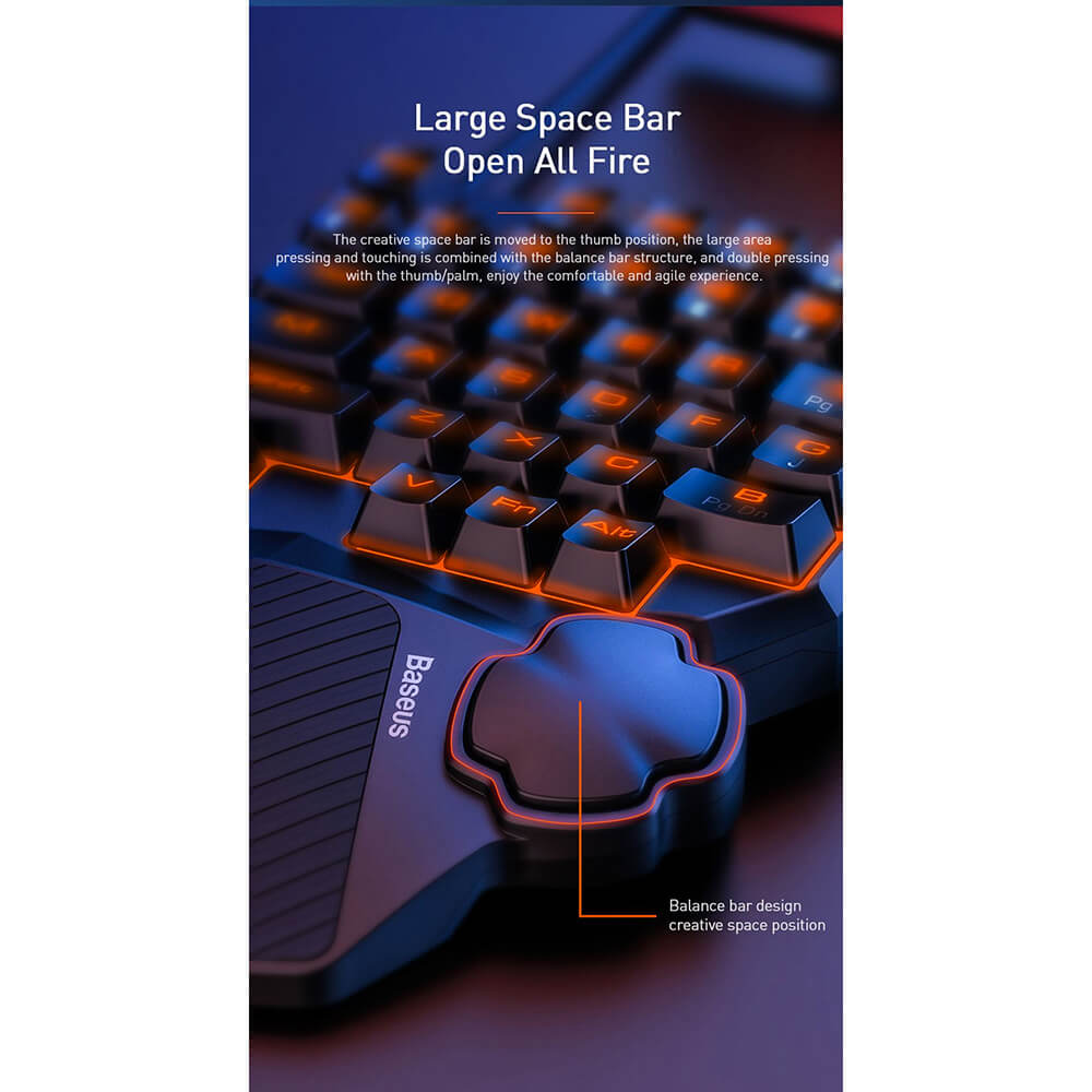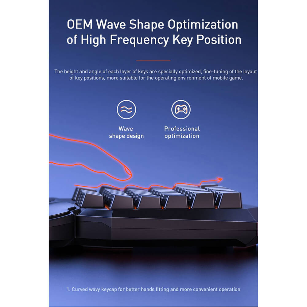 - Клавиатурата може да се използва както с компютър, така и с мобилни телефони чрез Baseus GAMO Mobile Game Adapter GA01