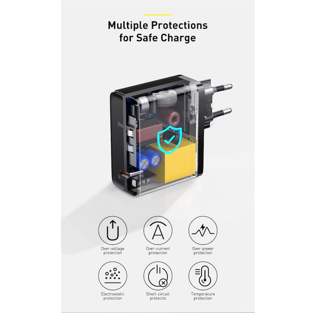 - 1 x Baseus GaN 2 Fast Charger 1C 100W - 1 x Baseus USB-C към USB-C кабел 100W (150 см) - 1 x ръководство