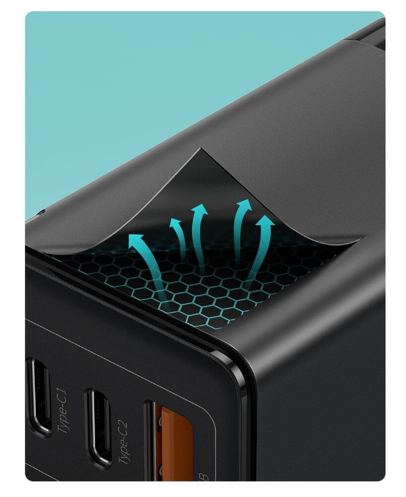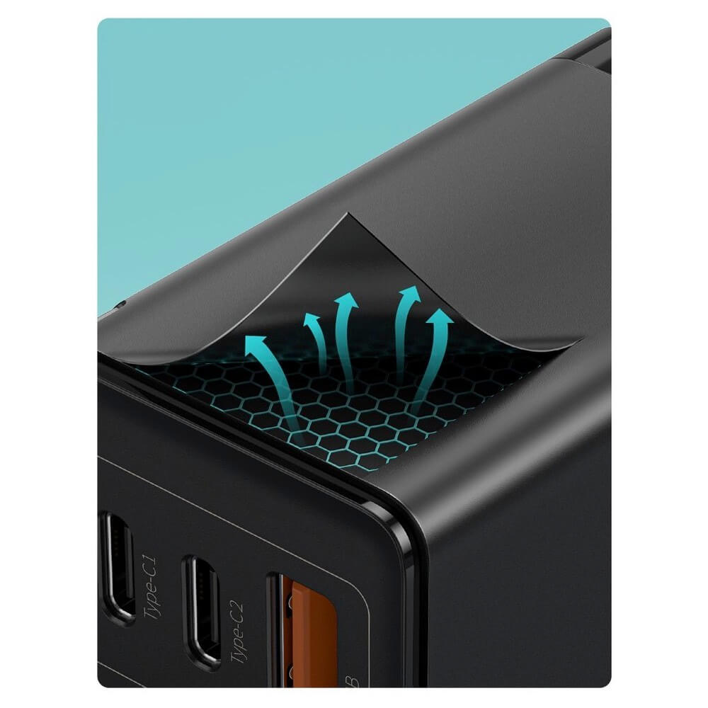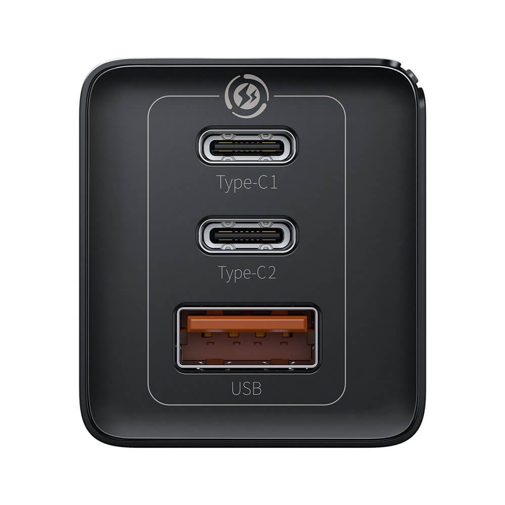 Baseus GaN 2 Pro Charger 65W (CCGAN2P-B01) - захранване за ел. мрежа за лаптопи, смартфони и таблети с USB и 2xUSB-C изходи с технология за бързо зареждане (черен)