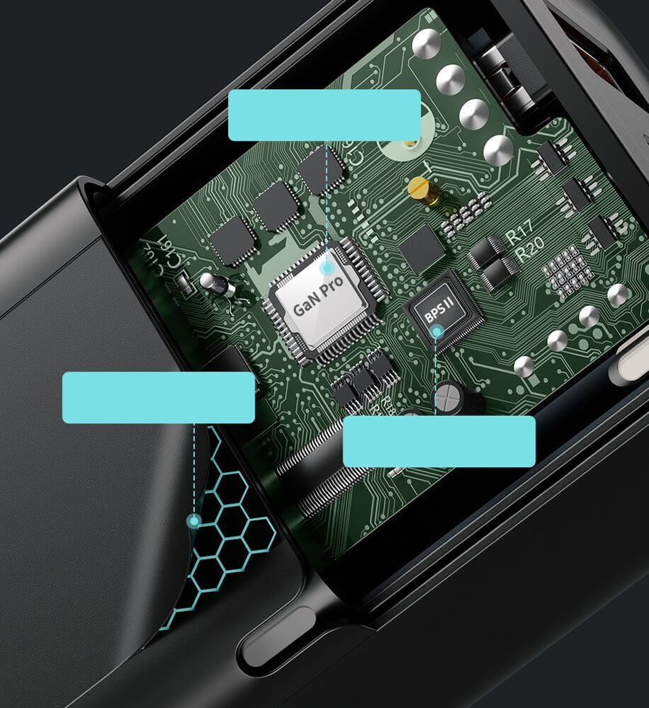 - GaN Technology - GaN е съкращение от галиев нитрид, който е нов вид полупроводников материал. Характеризира се с широка проводимост, висока топлопроводимост, устойчивост на висока температура, устойчивост на излъчване, устойчивост на киселинни и алкални елементи, висока якост и висока твърдост. Използването на GaN технологията, позволява да се изработят с до 50% по-малки и леки продукти, но същевременно по-бързи и ефикасни, в сравнение със стандартните полупроводникови елементи.