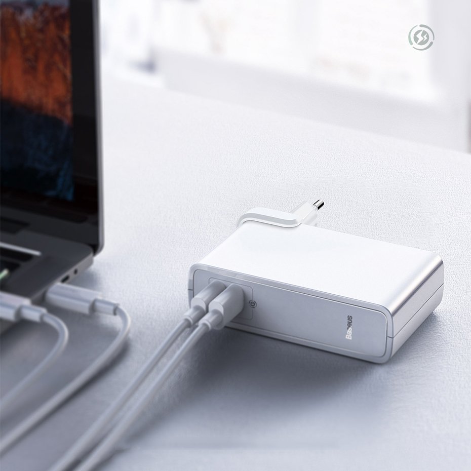 Baseus GaN Charger 45W Power Bank (PPNLD-F02) - външна батерия 10000 mAh и захранване за ел. мрежа с 2 x USB-C изходи и GaN технология (бял)