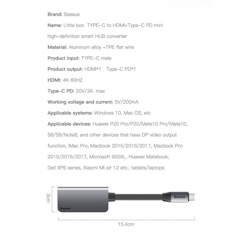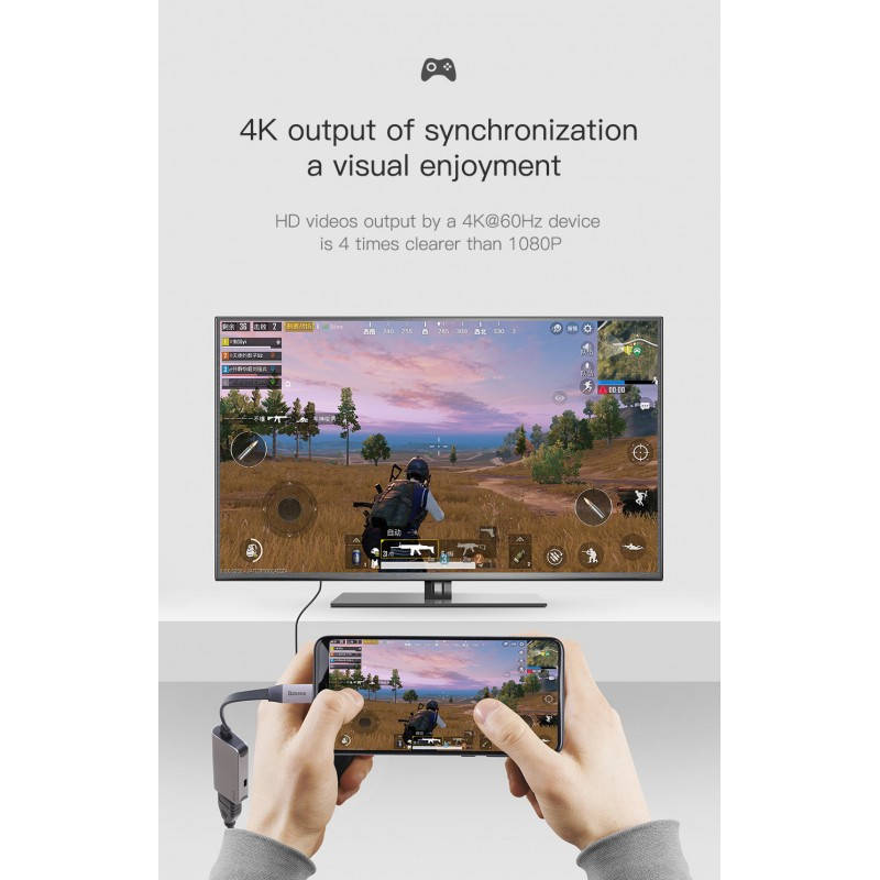 - Алуминиев адаптер, предназначен за свързване на вашето устройство с USB-C или Thunderbolt 3 към външно HDMI устройство (монитор или телевизор)