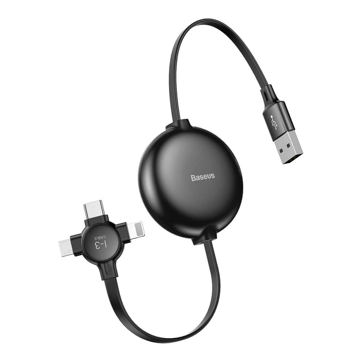 Baseus Little Octopus 3in1 Cable MicroUSB, USB-C and Lightning Connectors - качествен USB кабел с Lightning, microUSB и USB-C конектори (черен)
