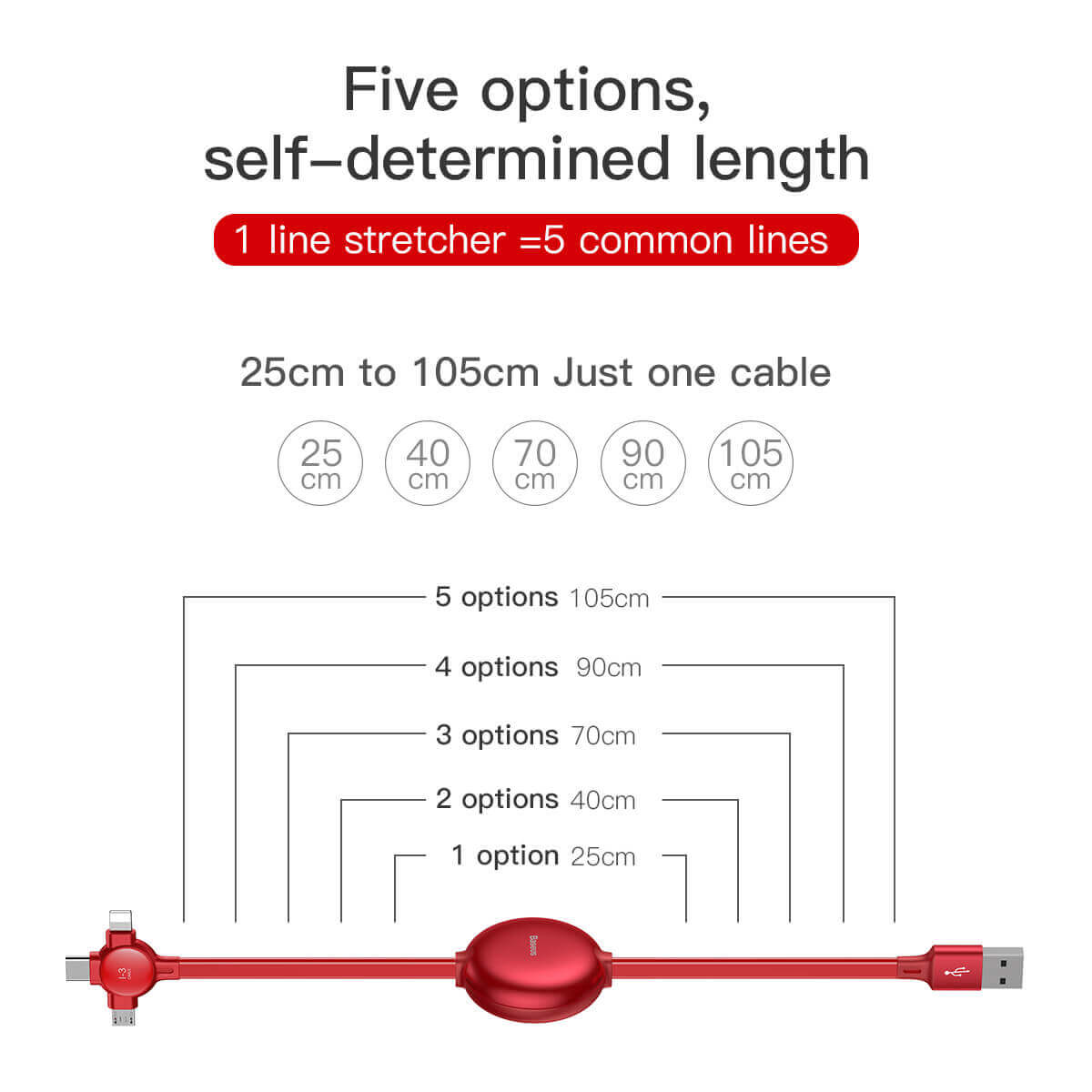 § Дизайнът включва разтягащ се кабел, който може да се регулира в 5 различни по дължина опции - 25, 40, 79, 90, 105 см