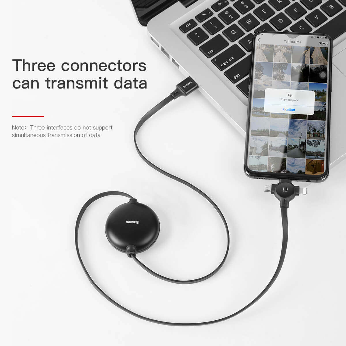 § Зареждай и синхронизирай устройствата си безпроблемно, благодарение на трите конектора - microUSB, Lightning и USB-C