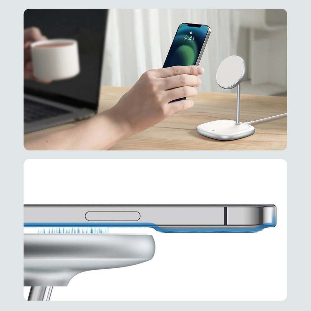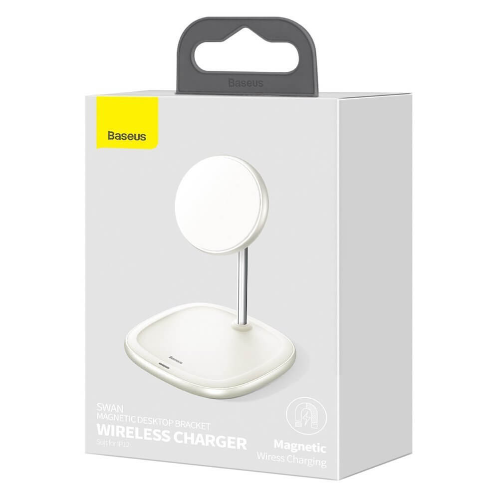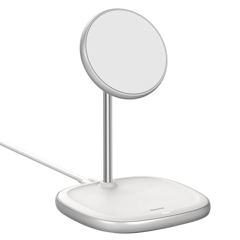Baseus Magnetic Wireless Qi Charging Stand 15W (WXSW-02) - поставка (пад) за безжично зареждане за iPhone с Magsafe (бял)