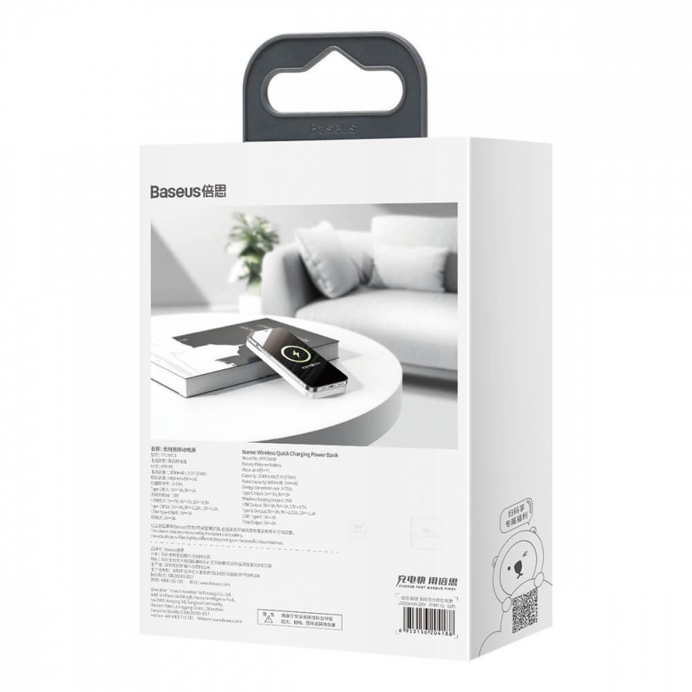 Baseus Magnetic Wireless Quick Charging Power Bank 10000 mAh (PPMT-02) - преносима външна батерия с USB-C порт, USB-A изход и безжично зареждане с MagSafe (бял) бутони към социални мрежи Код за поръчка: 58465Baseus50.62 € / 99 лв с ДДСПоръчайбр.Не е наличен Рейтинг: 5 /5 (1 глас(а))