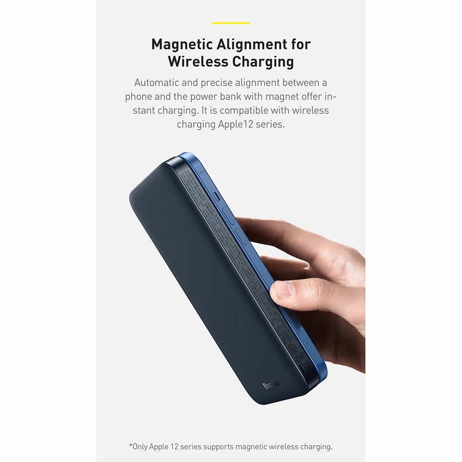 Baseus Magnetic Wireless Quick Charging Power Bank 10000 mAh - преносима външна батерия с USB-C порт, USB-A изход и безжично зареждане с MagSafe (син)