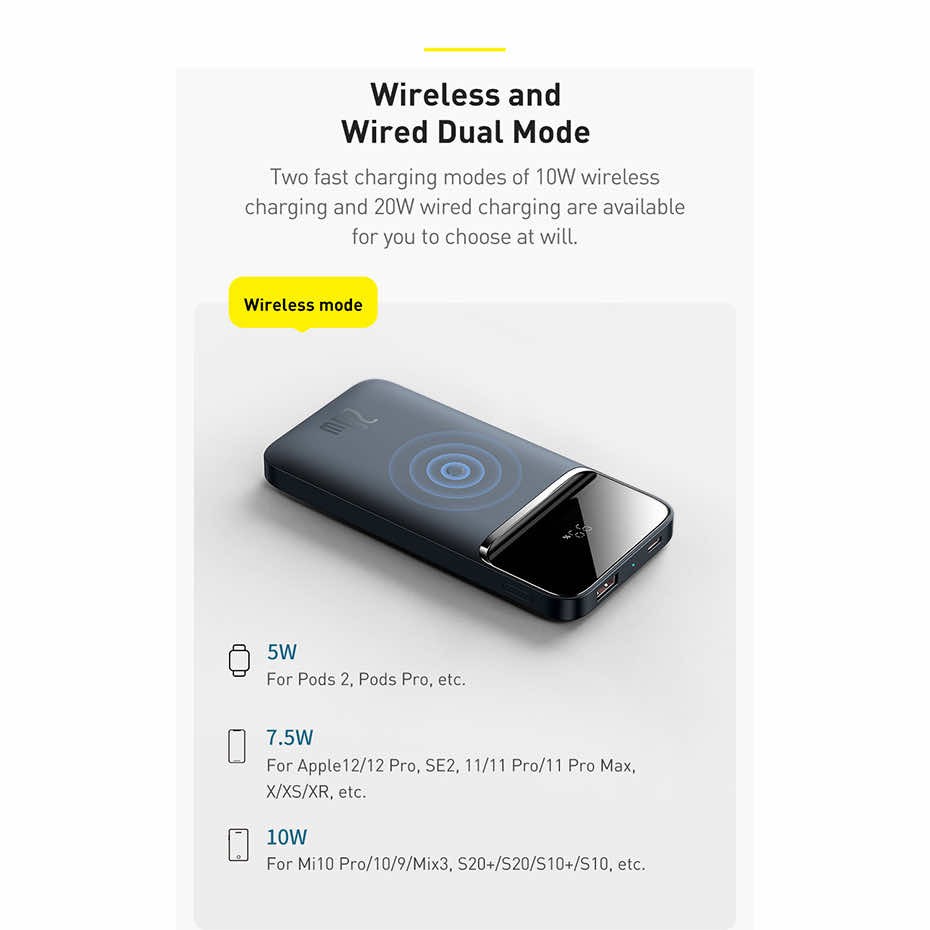- Когато е свързан към ел. мрежата, батерията продължава да осигурява безжично зареждане на вашите Qi съвместими устройства, докато се презарежда, така че всяка сутрин можете да се събуждате с напълно заредени телефон и преносима батерия