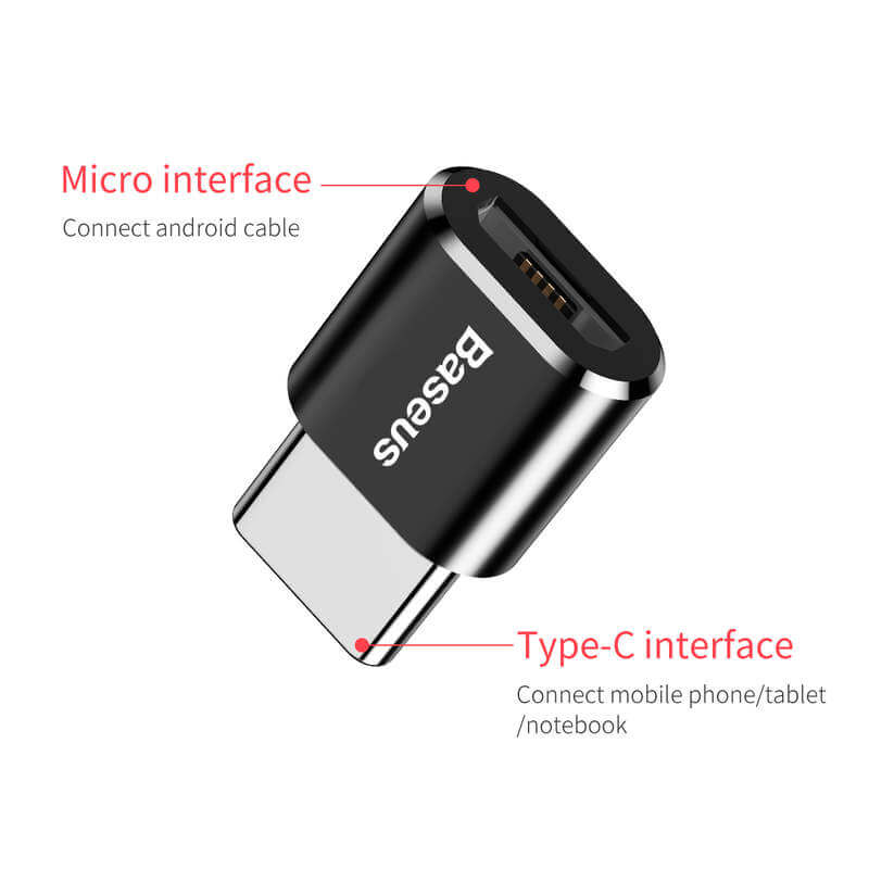 Baseus microUSB Female To USB-C Male Adapter - адаптер от microUSB женско към USB-C мъжко за мобилни устройства с USB-C порт