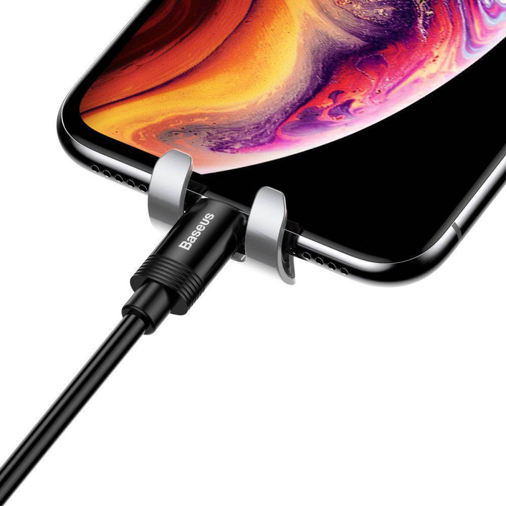 § Поставката работи на принципа на гравитацията: на долните крачета се поставя смартфона, а със страничните се захваща чрез прибирането им към него