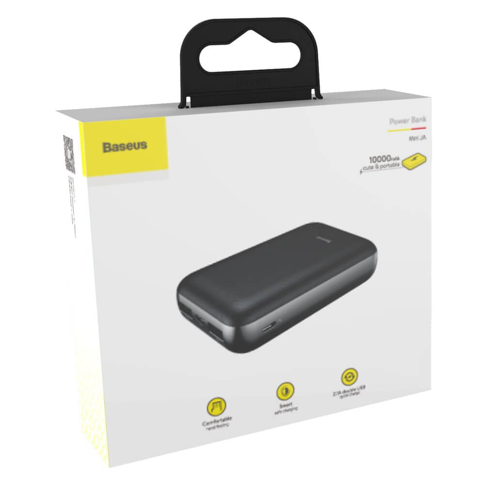 Baseus Mini JA Power Bank - външна батерия 10000 mAh с 2 USB изхода за зареждане на смартфони и таблети (черен)