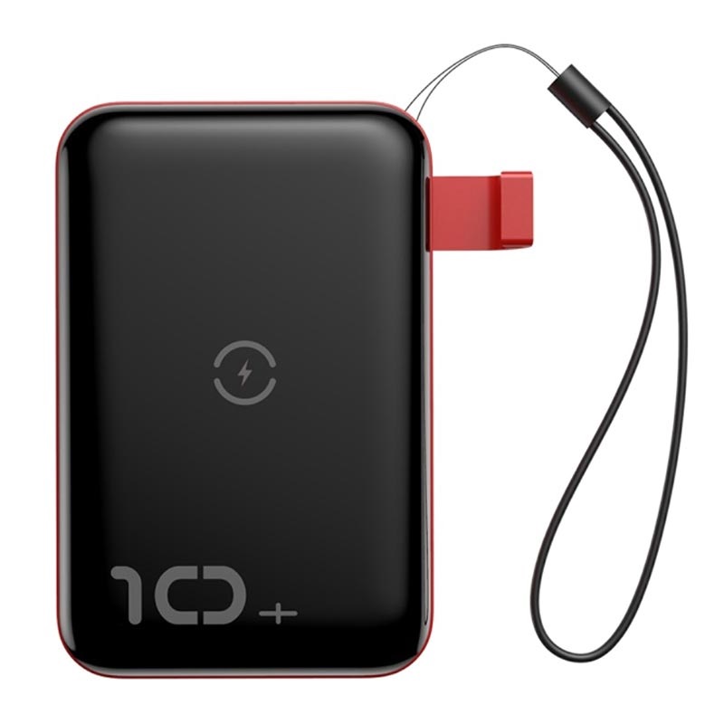 Baseus Mini S Bracket 10W Wireless Charger 10000mAh - външна батерия USB и USB-C изходи и с технология за безжично зареждане (черен-червен)