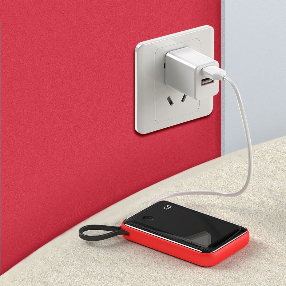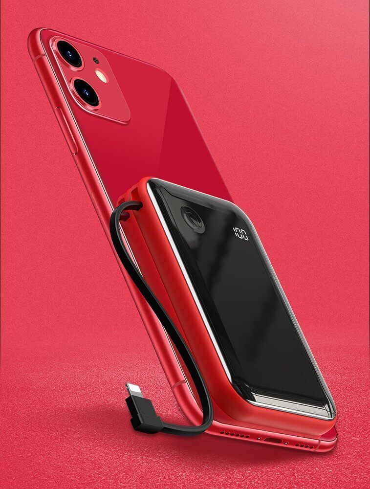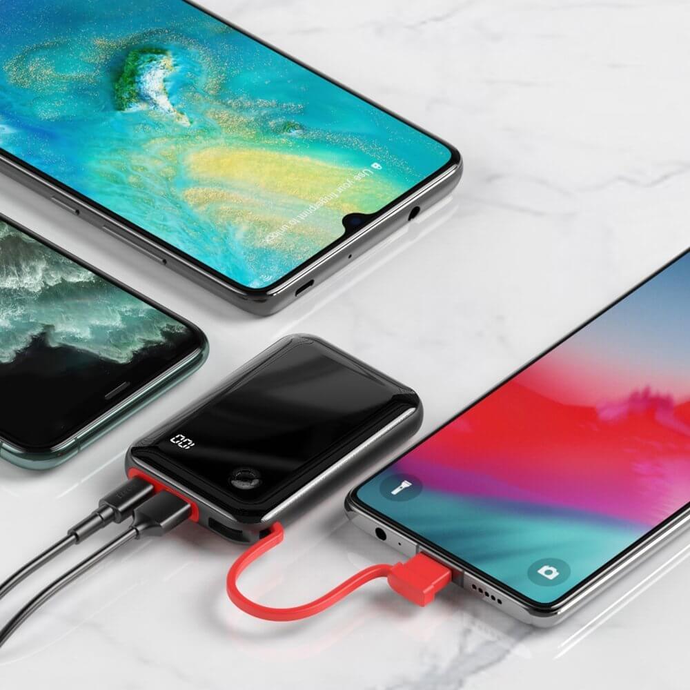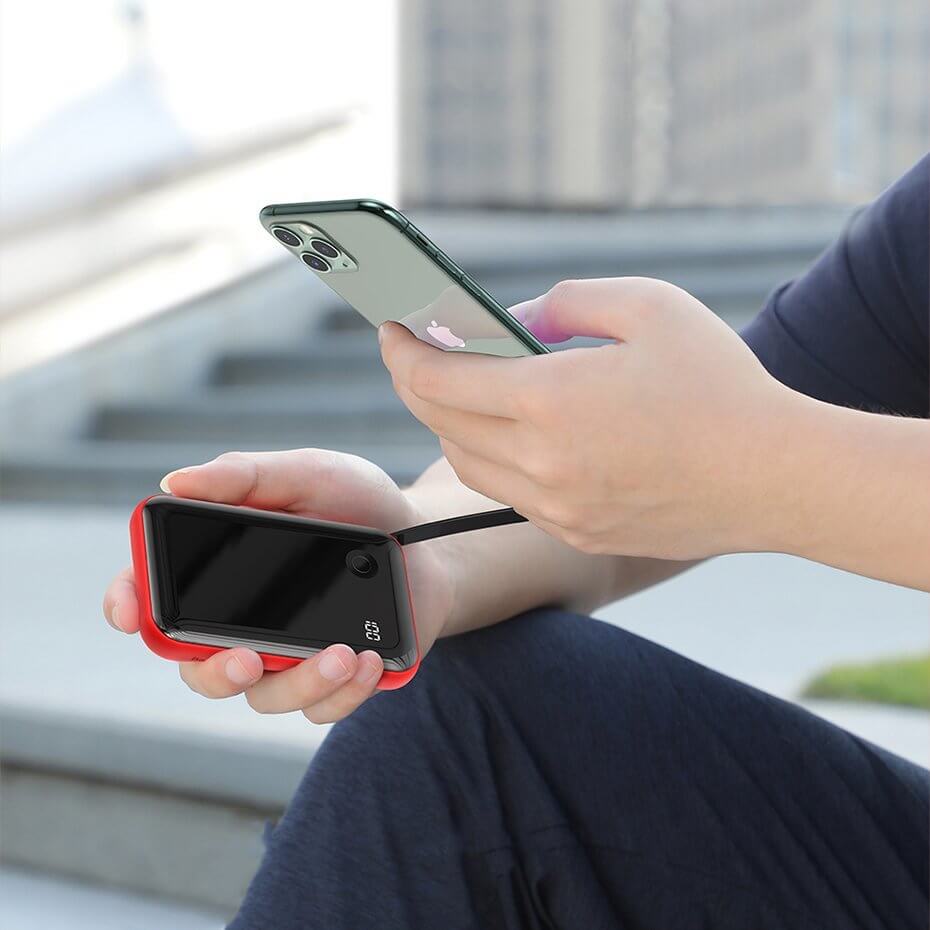 - Батерията разполага с вграден USB-C кабели, с който можете директно да зареждате вашето мобилно устройство