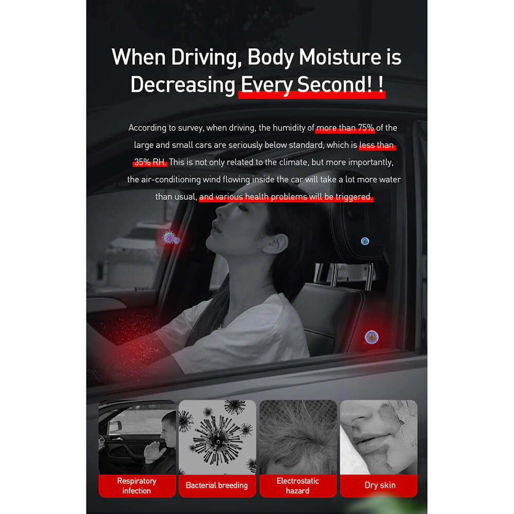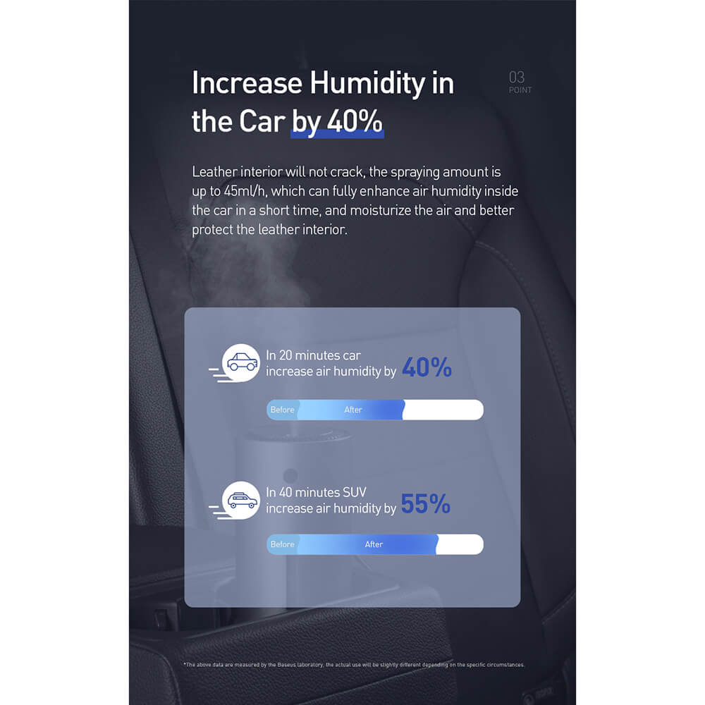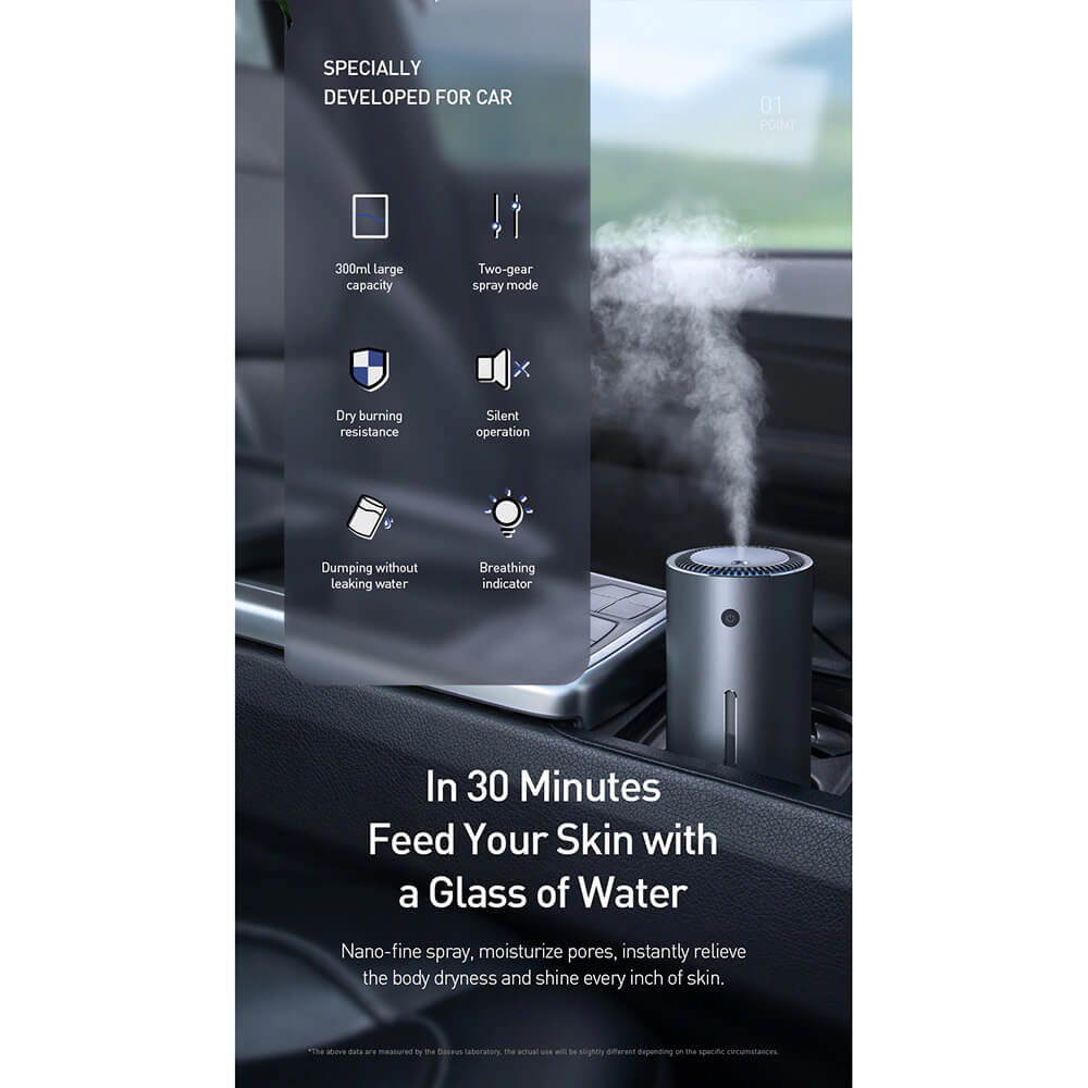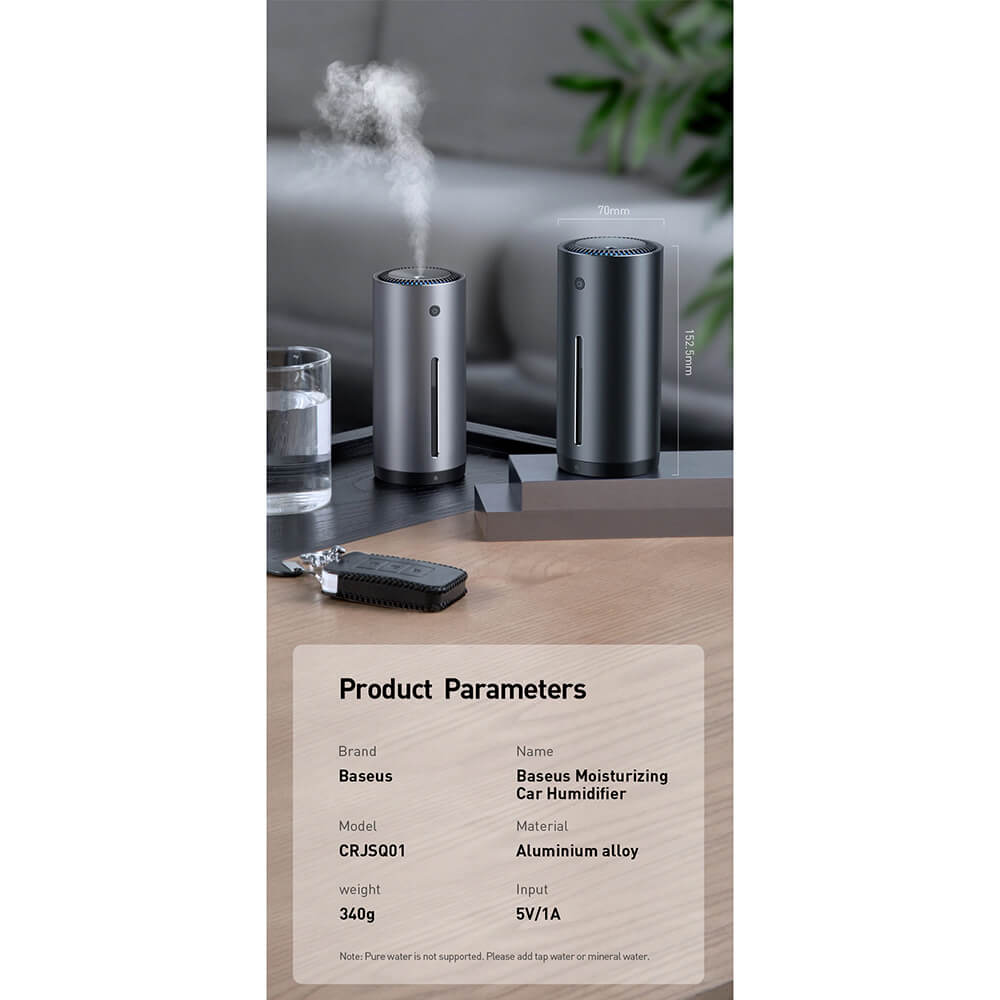 - За да овлажнявате въздуха в колата си се нуждаете от подходящ за целта овлажнител. Точно такъв е и Baseus Moisturizing Car Humidifier