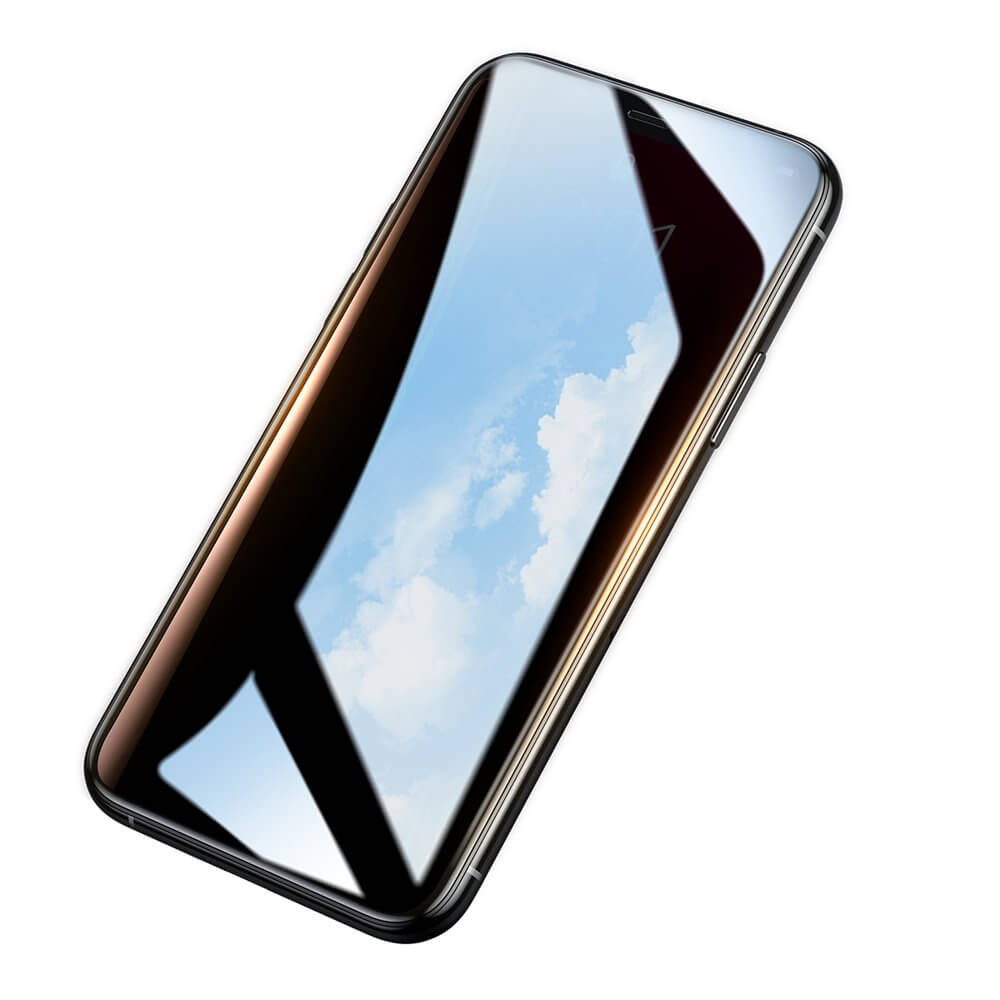 Baseus Privacy 3D Tempered Glass (0.23mm) - калено стъклено защитно покритие с извити ръбове и определен ъгъл на виждане за целия дисплея на iPhone 11, iPhone XR (черен-прозрачен) (2 броя)