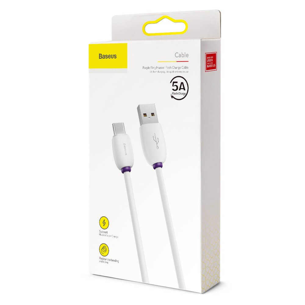 Baseus Purple Ring Quick Charge USB-C Cable - бърз USB-C кабел (5A) за устройства с USB-C порт (100 см) (бял)