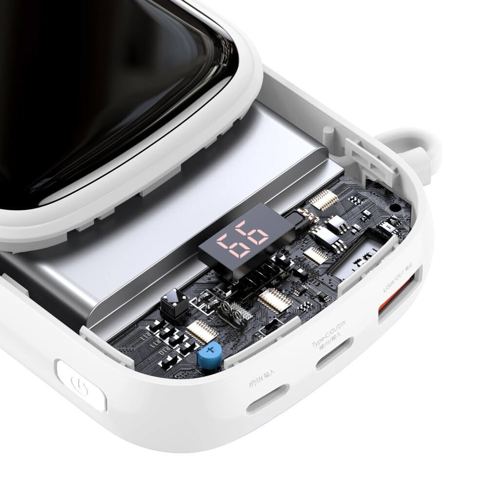 Baseus Qpow Digital Display Power bank with Lightning cable 20W (PPQD-H02) - външна батерия 20000 mAh с вграден Ligtning кабел и USB-C, USB-A и Lightning изходи (бял)