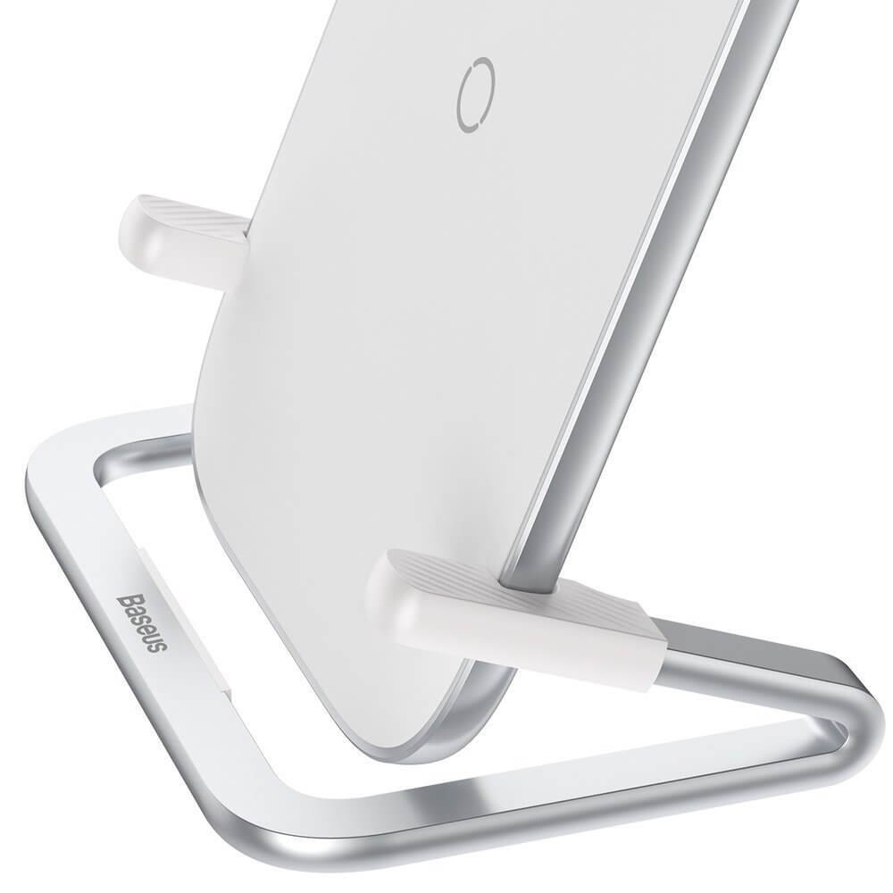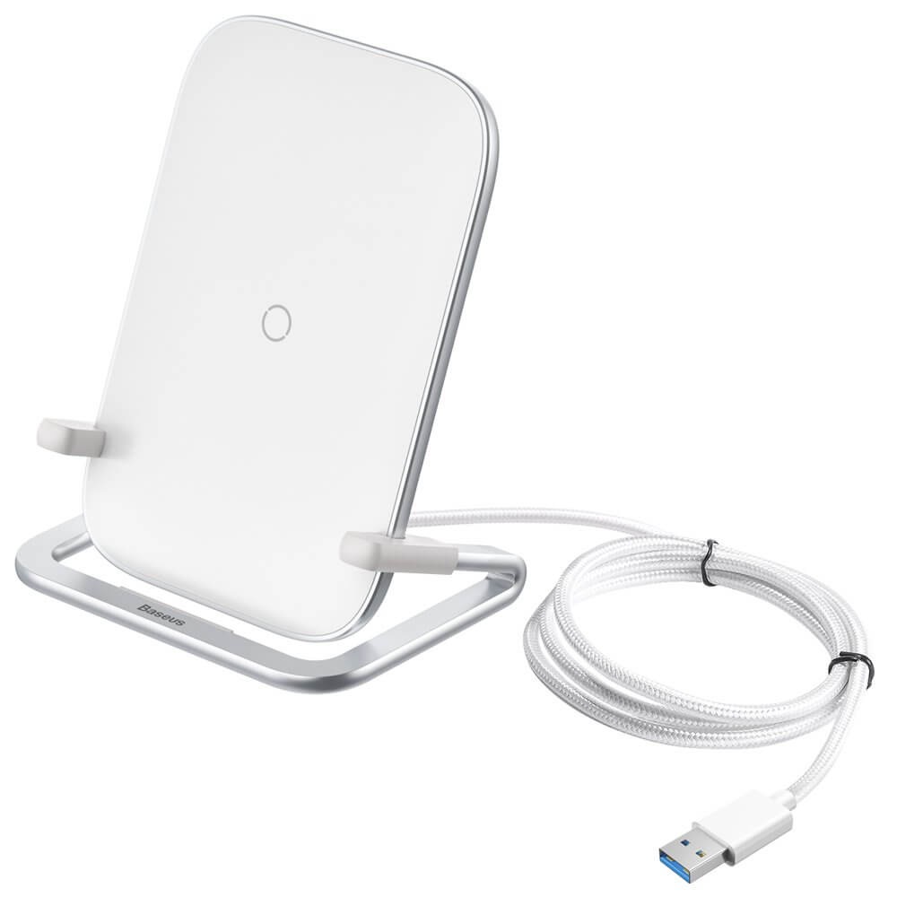 Baseus Rib Wireless Charger (WXPG-02) - поставка (пад) за безжично зареждане с технология за бързо зареждане за Qi съвместими устройства (бял) (фабричен дефект)