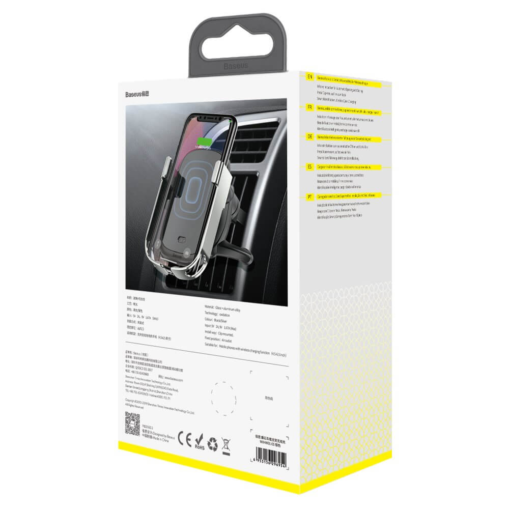Baseus Rock Solid Wireless Charger Car Mount - поставка за радиатора на кола с безжично зареждане за Qi съвместими смартфони (сребрист)