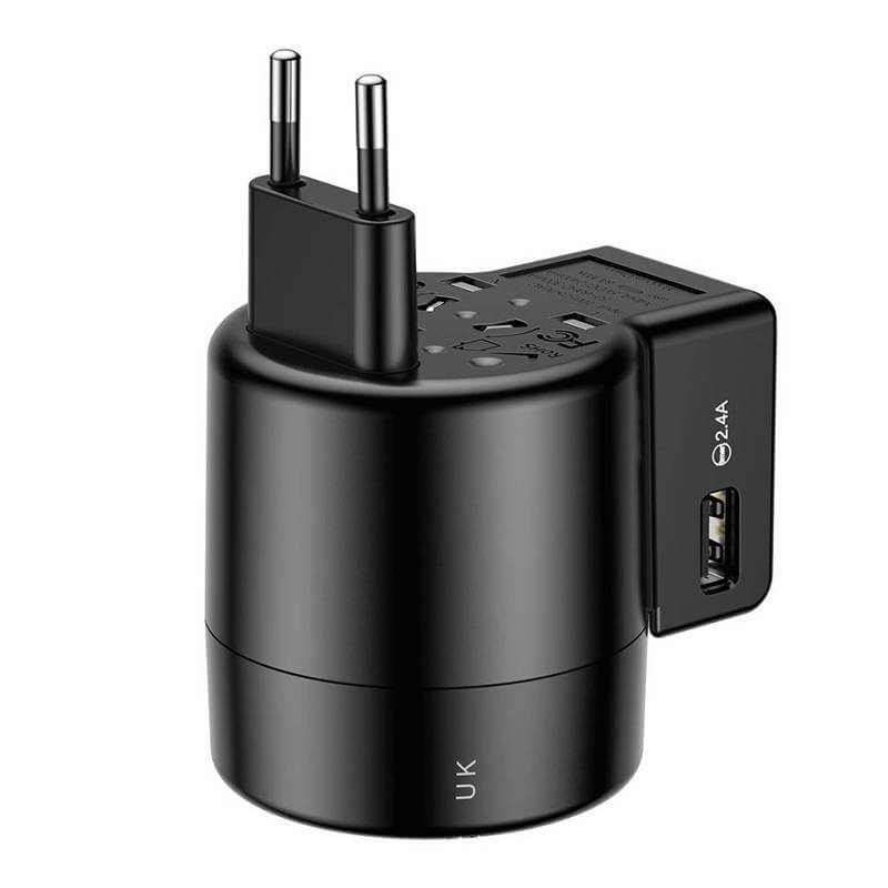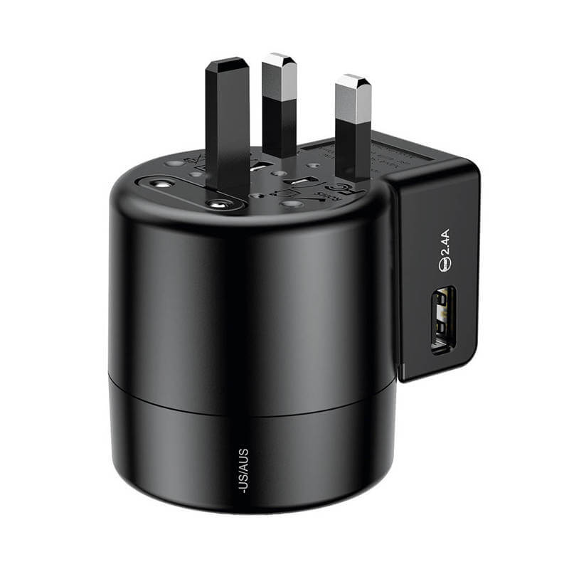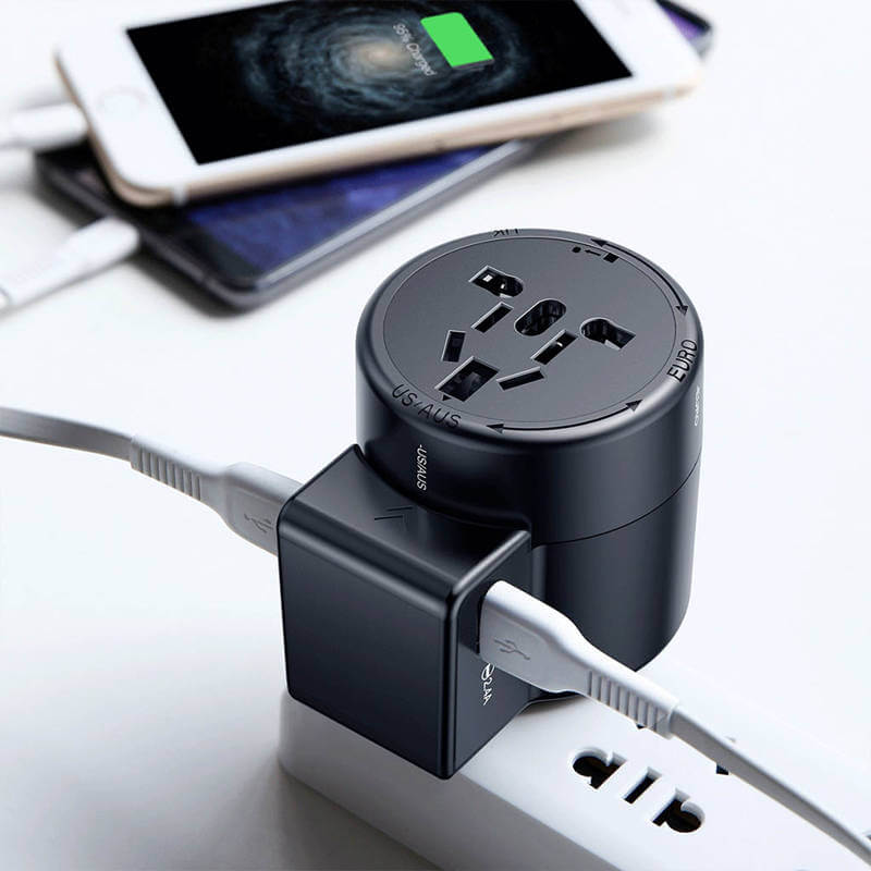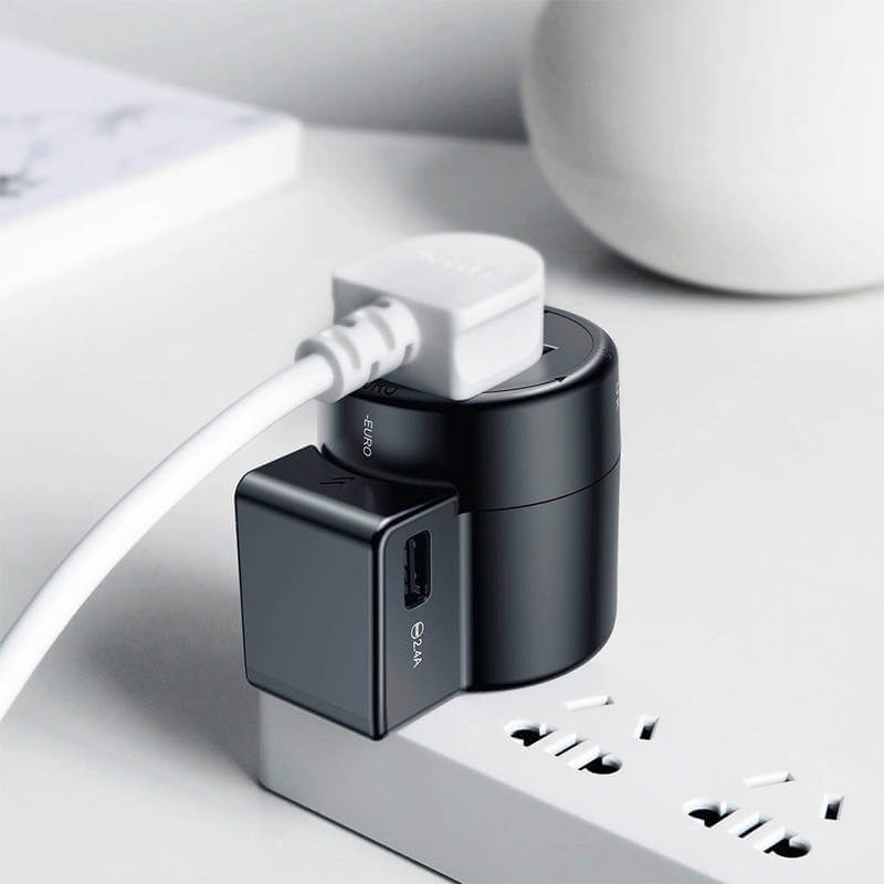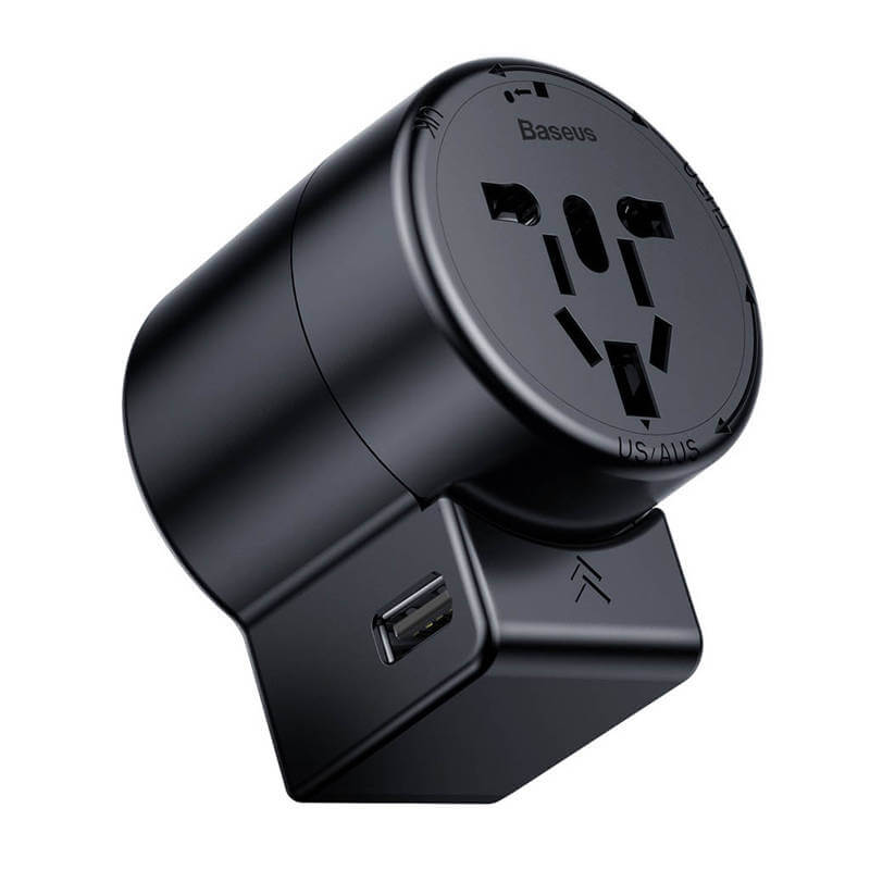 Baseus Rotation Universal Travel Adapter - захранване с 2 USB изхода и преходници за цял свят в едно устройство за мобилни устройства