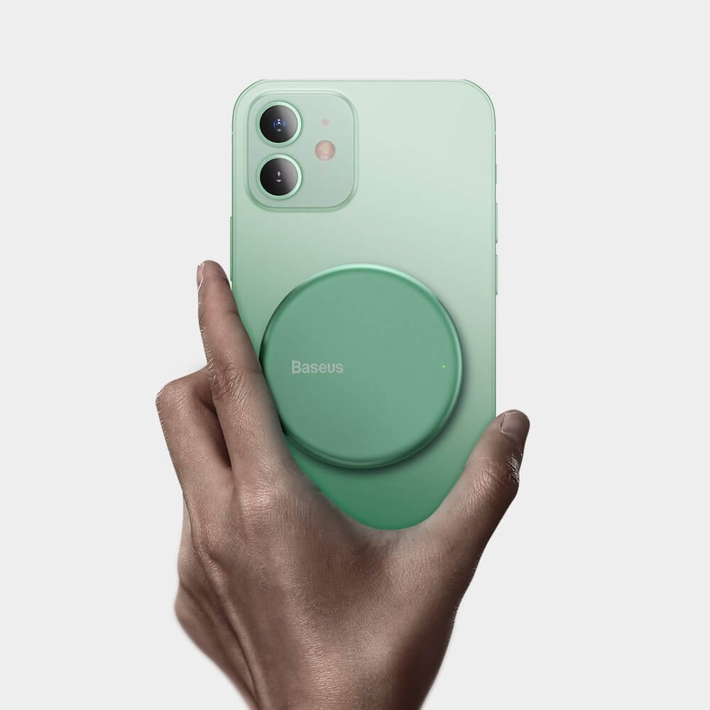 Baseus Simple Mini Magnetic Wireless Charger (WXJK-H06) - поставка (пад) за безжично зареждане за iPhone с Magsafe и Qi съвместими устройства (зелен)