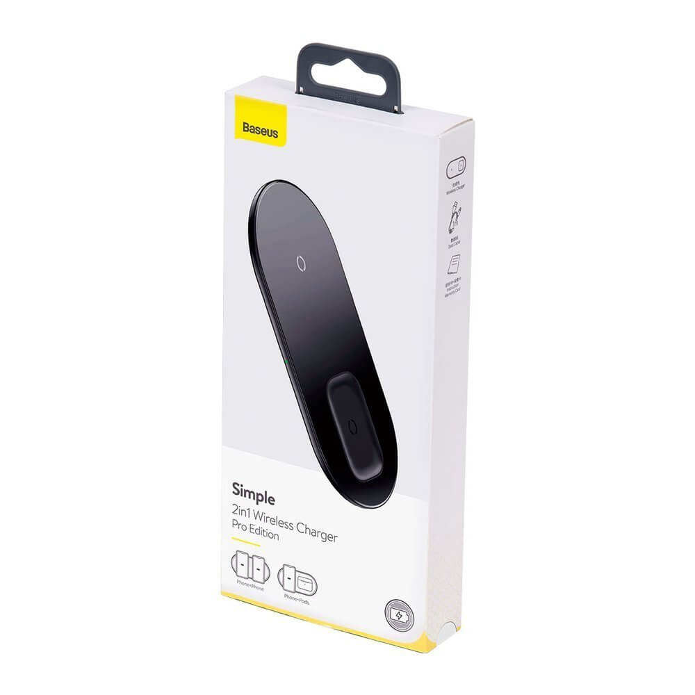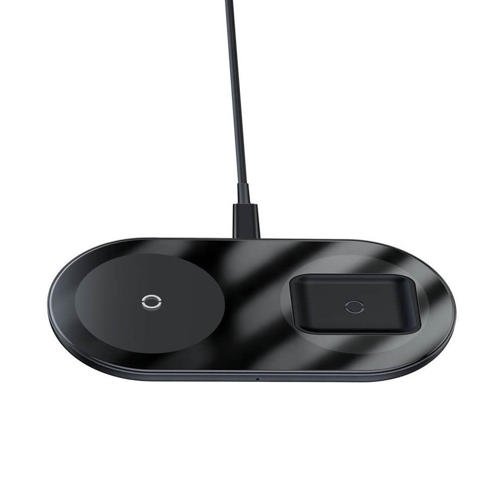 Baseus Simple Pro 2in1 Wireless Charger (WXJK-C01) - двойна поставка (пад) с Fast Charge технология за безжично зареждане за Qi съвместими устройства и Apple Airpods Pro (черен)