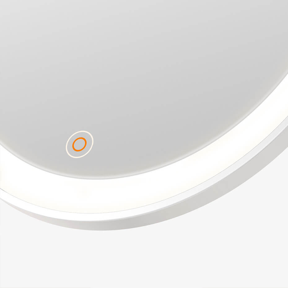 - LED светлината се активира чрез натискане и задържане на тъч бутона и яркоста може да се регулира на няколко степени, с помоща на тъч бутона в долната част на самото огледало