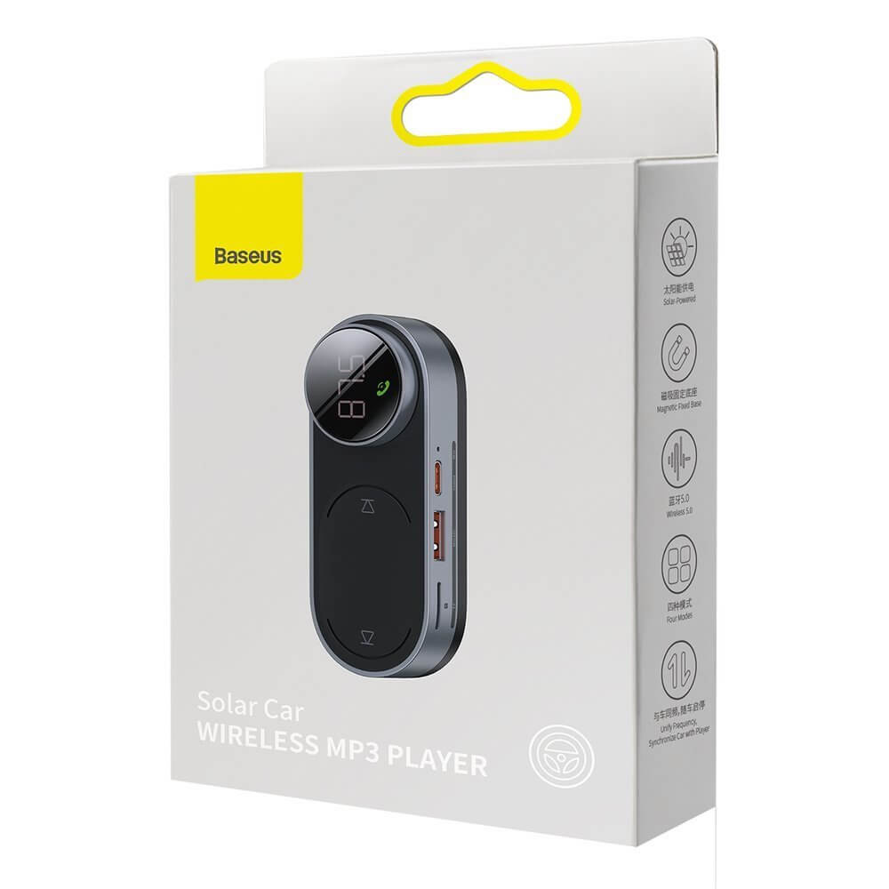 - 1 х Baseus Solar Bluetooth FM Transmitter - 1 х USB-C към USB-A кабел за зареждане