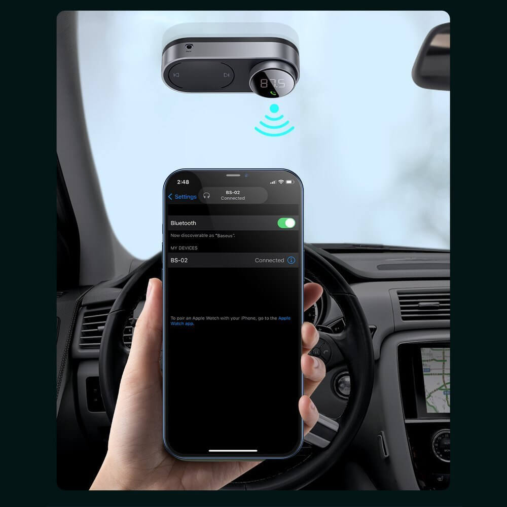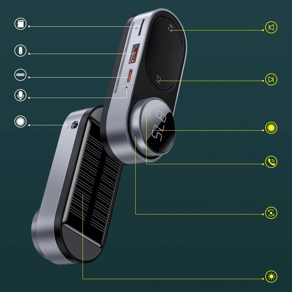- Този FM трансмитер ви позволява да споделяте любимата си музика от мобилния си телефон, с помощта на FM радиовълни. Просто свържете вашия телефон с FM трансмитера чрез Bluetooth, след това настройте на FM радио с ясна честота и се наслаждавайте на любимата си музика в движение