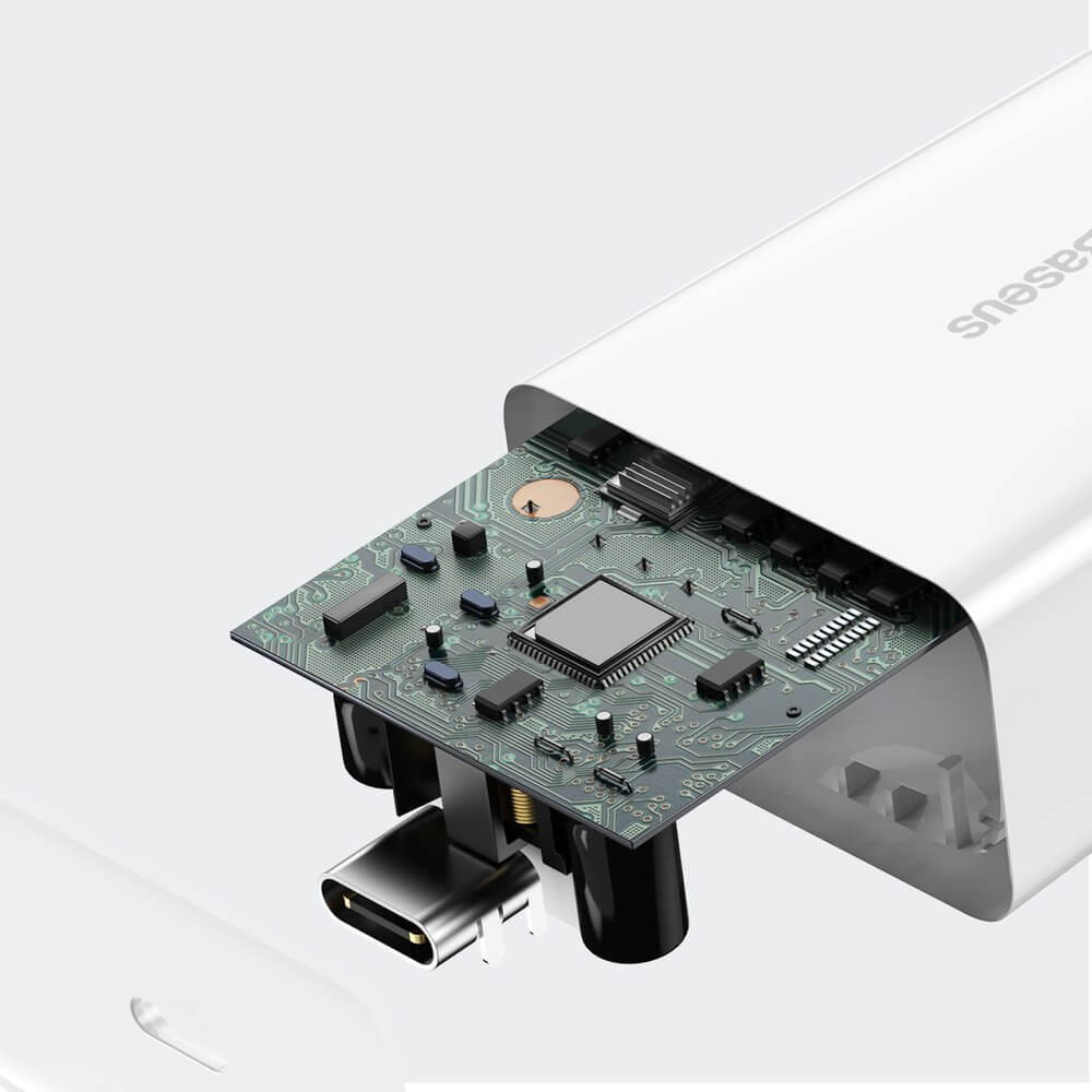 - Захранване за ел. мрежа с USB-C изход и с технология за бързо зареждане